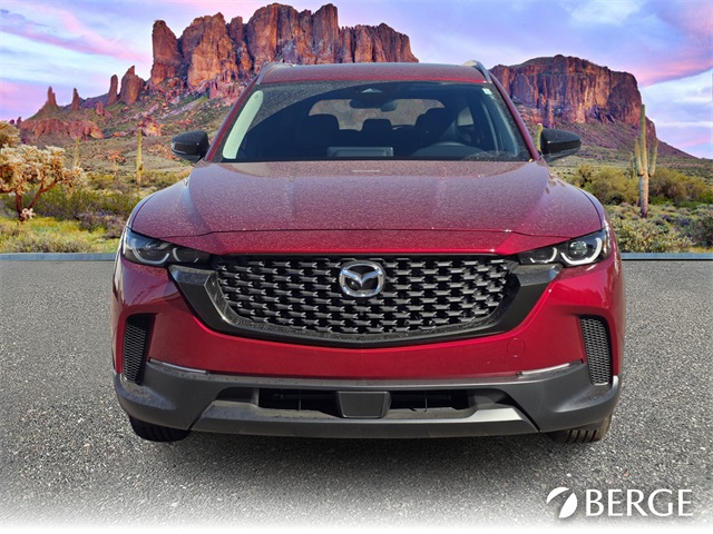 Serving The Valley For Over 40 Years! This Mazda CX-50 is equipped with the following features: Cargo Package (Cargo Blocks), 12 Speakers, 4-Wheel Disc Brakes, ABS brakes, Air Conditioning, Alloy wheels, AM/FM radio: SiriusXM, AppLink/Apple CarPlay and Android Auto, Auto High-beam Headlights, Automatic temperature control, Black Lug Nuts & Black Wheel Locks, Brake assist, Bumpers: body-color, Delay-off headlights, Driver door bin, Driver vanity mirror, Dual front impact airbags, Dual front side impact airbags, E911 Automatic Emergency Notification, Electronic Stability Control, Emergency communication system: MAZDA CONNECT, Exterior Parking Camera Rear, Front anti-roll bar, Front Bucket Seats, Front Center Armrest, Front dual zone A/C, Front reading lights, Front wheel independent suspension, Fully automatic headlights, Half Leatherette Seat Trim, Heated door mirrors, Heated Front Bucket Seats, Heated front seats, Illuminated entry, Infotainment System Voice Command, Knee airbag, Leather Shift Knob, Leather steering wheel, Low tire pressure warning, Multifunction Commander Control, Occupant sensing airbag, Outside temperature display, Overhead airbag, Overhead console, Panic alarm, Passenger door bin, Passenger vanity mirror, Power door mirrors, Power driver seat, Power Liftgate, Power moonroof, Power steering, Power windows, Radio Broadcast Data System Program Information, Radio data system, Radio: AM/FM/HD Audio System, Rain sensing wipers, Rear seat center armrest, Rear window defroster, Rear window wiper, Remote keyless entry, SMS Text Msg Audio Delivery & Reply, Speed control, Speed-sensing steering, Split folding rear seat, Spoiler, Steering wheel mounted audio controls, Tachometer, Telescoping steering wheel, Tilt steering wheel, Traction control, Trip computer, Turn signal indicator mirrors, Variably intermittent wipers, and Wheels: 17" x 7J Aluminum Alloy.
