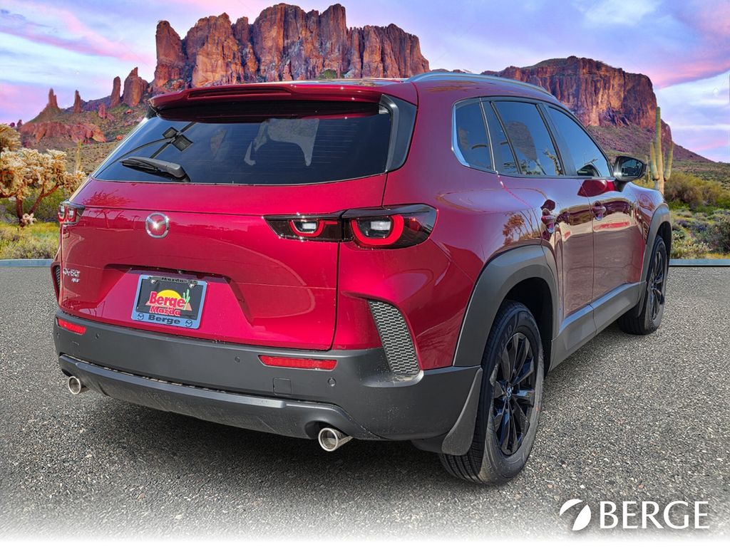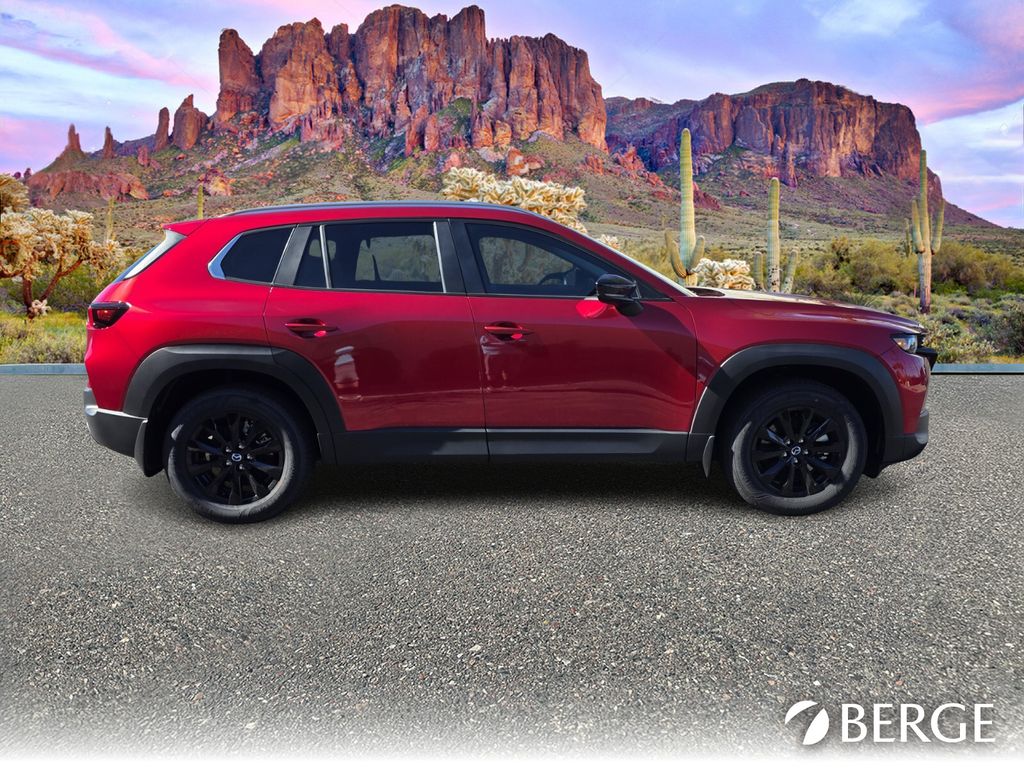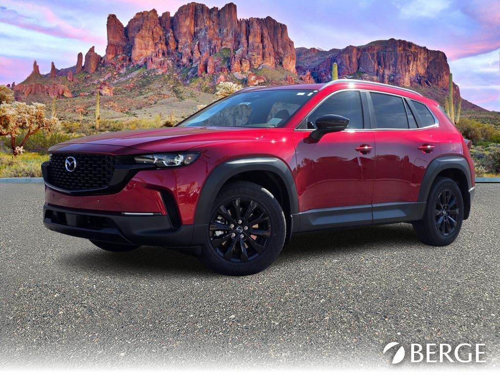 Serving The Valley For Over 40 Years! This Mazda CX-50 is equipped with the following features: Cargo Package, 4-Wheel Disc Brakes, 8 Speakers, ABS brakes, Air Conditioning, Alloy wheels, AM/FM radio, AppLink/Apple CarPlay and Android Auto, Auto High-beam Headlights, Automatic temperature control, Brake assist, Bumpers: body-color, Carpet Cargo Mat, Delay-off headlights, Driver door bin, Driver vanity mirror, Dual front impact airbags, Dual front side impact airbags, Electronic Stability Control, Emergency communication system: MAZDA CONNECT, Exterior Parking Camera Rear, Front and Rear Splash Guards, Front anti-roll bar, Front Bucket Seats, Front Center Armrest, Front dual zone A/C, Front reading lights, Front wheel independent suspension, Fully automatic headlights, Half Leatherette Seat Trim, Heated door mirrors, Heated Front Bucket Seats, Heated front seats, Illuminated entry, Knee airbag, Leather Shift Knob, Leather steering wheel, Low tire pressure warning, Occupant sensing airbag, Outside temperature display, Overhead airbag, Overhead console, Panic alarm, Passenger door bin, Passenger vanity mirror, Power door mirrors, Power driver seat, Power Liftgate, Power moonroof, Power steering, Power windows, Radio data system, Radio: AM/FM/HD 8-Speaker Audio Sound System, Rain sensing wipers, Rear seat center armrest, Rear window defroster, Rear window wiper, Remote keyless entry, Soul Red Crystal Metallic Paint Charge, Speed control, Speed-sensing steering, Split folding rear seat, Spoiler, Steering wheel mounted audio controls, Tachometer, Telescoping steering wheel, Tilt steering wheel, Traction control, Trip computer, Turn signal indicator mirrors, Variably intermittent wipers, and Wheels: 17" x 7J Aluminum Alloy Black Metallic Finish.