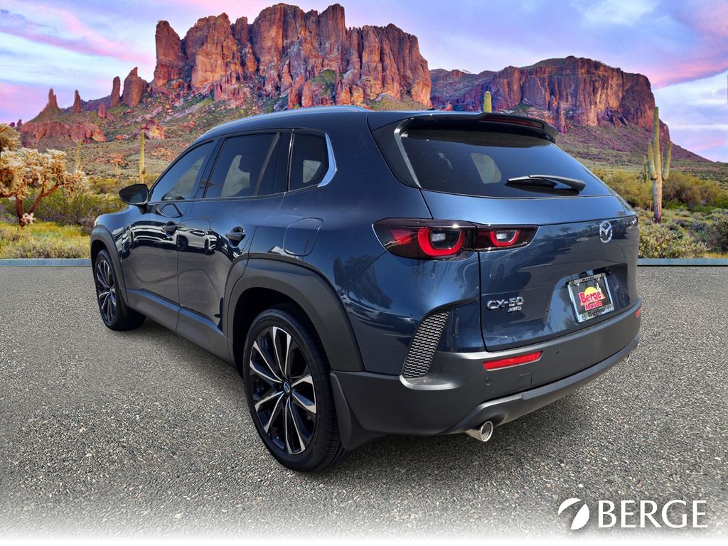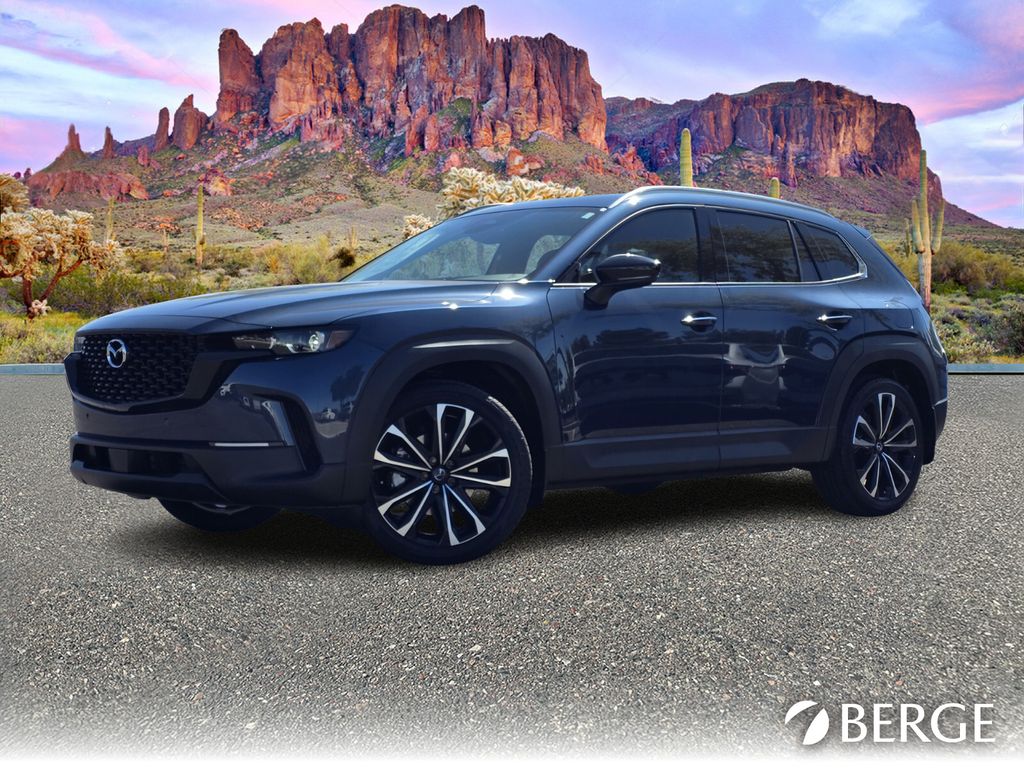 Serving The Valley For Over 40 Years! This Mazda CX-50 is equipped with the following features: 12 Speakers, 4-Wheel Disc Brakes, ABS brakes, Air Conditioning, Alloy wheels, AM/FM radio: SiriusXM, AppLink/Apple CarPlay and Android Auto, Auto High-beam Headlights, Auto-dimming Rear-View mirror, Automatic temperature control, Brake assist, Bumpers: body-color, Delay-off headlights, Driver door bin, Driver vanity mirror, Dual front impact airbags, Dual front side impact airbags, Electronic Stability Control, Emergency communication system: MAZDA CONNECT, Exterior Parking Camera Rear, Front anti-roll bar, Front Bucket Seats, Front Center Armrest, Front dual zone A/C, Front reading lights, Front wheel independent suspension, Fully automatic headlights, Heated and Ventilated Front Seats with 3 Level Adjustment, Heated door mirrors, Heated front seats, Illuminated entry, Knee airbag, Leather Seat Trim, Leather Shift Knob, Leather steering wheel, Low tire pressure warning, Memory seat, Occupant sensing airbag, Outside temperature display, Overhead airbag, Overhead console, Panic alarm, Passenger door bin, Passenger vanity mirror, Power door mirrors, Power driver seat, Power Liftgate, Power moonroof, Power passenger seat, Power steering, Power windows, Radio data system, Radio: AM/FM/HD Bose 12-Speaker Audio Sound System, Rain sensing wipers, Rear seat center armrest, Rear window defroster, Rear window wiper, Remote keyless entry, Speed control, Speed-sensing steering, Split folding rear seat, Spoiler, Steering wheel mounted audio controls, Tachometer, Telescoping steering wheel, Tilt steering wheel, Traction control, Trip computer, Turn signal indicator mirrors, Variably intermittent wipers, Ventilated front seats, and Wheels: 20" x 8J Aluminum Alloy Black Metallic with Machining Cut.