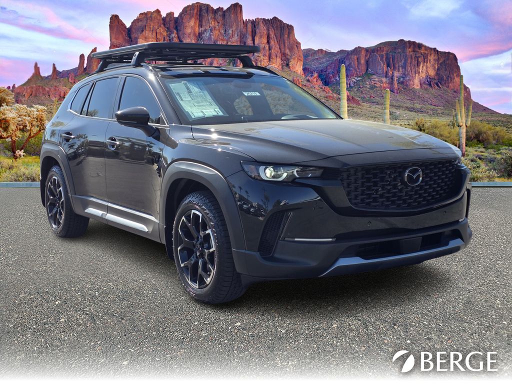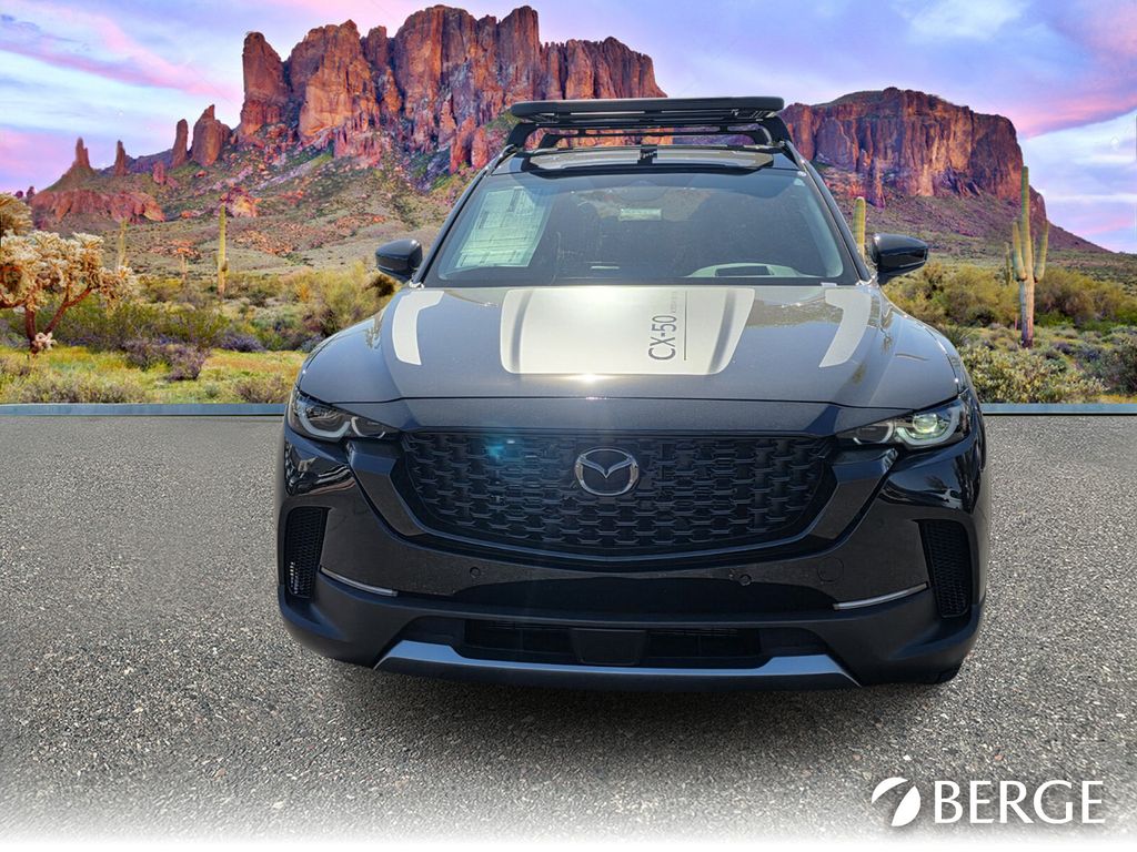 Serving The Valley For Over 40 Years! This Mazda CX-50 is equipped with the following features: Apex Package (Black Cross Bars, Front & Rear Splash Guards, and Roof Platform), Cargo Package (Cargo Blocks), 12 Speakers, 4-Wheel Disc Brakes, ABS brakes, Air Conditioning, Alloy wheels, AM/FM radio: SiriusXM, AppLink/Apple CarPlay and Android Auto, Auto High-beam Headlights, Auto-dimming Rear-View mirror, Automatic temperature control, Brake assist, Bumpers: body-color, Carpet Cargo Mat, Compass, Delay-off headlights, Driver door bin, Driver vanity mirror, Dual front impact airbags, Dual front side impact airbags, Electronic Stability Control, Emergency communication system: MAZDA CONNECT, Exterior Parking Camera Rear, Front anti-roll bar, Front Bucket Seats, Front Center Armrest, Front dual zone A/C, Front reading lights, Front wheel independent suspension, Fully automatic headlights, Garage door transmitter: HomeLink, Heads-Up Display, Heated door mirrors, Heated front seats, Heated rear seats, Heated steering wheel, Heated/Ventilated Front Seats w/3 Level Adjustment, Illuminated entry, Knee airbag, Leather Seat Trim, Leather Shift Knob, Leather steering wheel, Low tire pressure warning, Memory seat, Navigation system: MAZDA CONNECT, Occupant sensing airbag, Outside temperature display, Overhead airbag, Overhead console, Panic alarm, Passenger door bin, Passenger vanity mirror, Power door mirrors, Power driver seat, Power Liftgate, Power moonroof, Power passenger seat, Power steering, Power windows, Radio data system, Radio: AM/FM/HD Bose 12-Speaker Audio Sound System & Navigation, Rain sensing wipers, Rear seat center armrest, Rear window defroster, Rear window wiper, Remote keyless entry, Speed control, Speed-sensing steering, Split folding rear seat, Spoiler, Steering wheel mounted audio controls, Tachometer, Telescoping steering wheel, Tilt steering wheel, Traction control, Trip computer, Turn signal indicator mirrors, Variably intermittent wipers, Ventilated front seats, and Wheels: 18" x 8J Aluminum Alloy Black Metallic Finish.