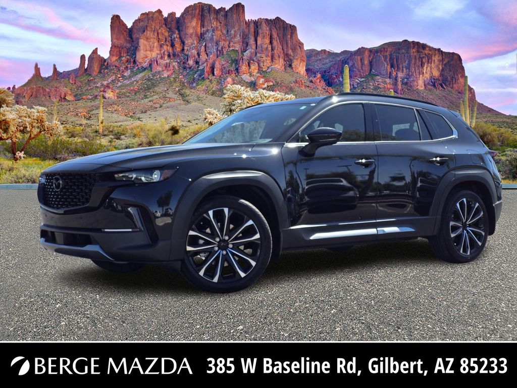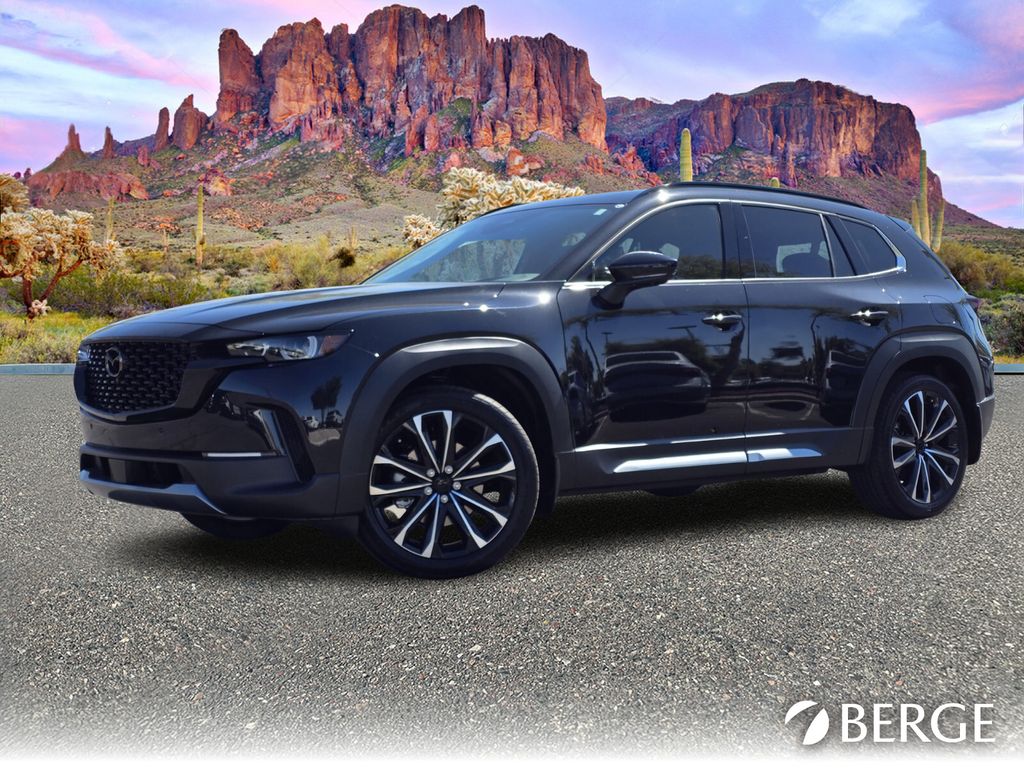 Serving The Valley For Over 40 Years! This Mazda CX-50 is equipped with the following features: 12 Speakers, 4-Wheel Disc Brakes, ABS brakes, Air Conditioning, Alloy wheels, AM/FM radio: SiriusXM, AppLink/Apple CarPlay and Android Auto, Auto High-beam Headlights, Auto-dimming door mirrors, Auto-dimming Rear-View mirror, Automatic temperature control, Brake assist, Bumpers: body-color, Compass, Delay-off headlights, Driver door bin, Driver vanity mirror, Dual front impact airbags, Dual front side impact airbags, Electronic Stability Control, Emergency communication system: MAZDA CONNECT, Front anti-roll bar, Front Bucket Seats, Front Center Armrest, Front dual zone A/C, Front reading lights, Front wheel independent suspension, Fully automatic headlights, Garage door transmitter: HomeLink, Heads-Up Display, Heated and Ventilated Front Seats with 3 Level Adjustment, Heated door mirrors, Heated front seats, Heated rear seats, Heated steering wheel, Illuminated entry, Knee airbag, Leather Seat Trim, Leather Shift Knob, Leather steering wheel, Low tire pressure warning, Memory seat, Navigation system: MAZDA CONNECT, Occupant sensing airbag, Outside temperature display, Overhead airbag, Overhead console, Panic alarm, Passenger door bin, Passenger vanity mirror, Power door mirrors, Power driver seat, Power Liftgate, Power moonroof, Power passenger seat, Power steering, Power windows, Radio data system, Radio: AM/FM/HD Bose 12-Speaker Audio Sound System and Navigation, Rain sensing wipers, Rear seat center armrest, Rear window defroster, Rear window wiper, Remote keyless entry, Speed control, Speed-sensing steering, Split folding rear seat, Spoiler, Steering wheel mounted audio controls, Tachometer, Telescoping steering wheel, Tilt steering wheel, Traction control, Trip computer, Turn signal indicator mirrors, Variably intermittent wipers, Ventilated front seats, and Wheels: 20" x 8J Aluminum Alloy Black Metallic with Machining Cut.
