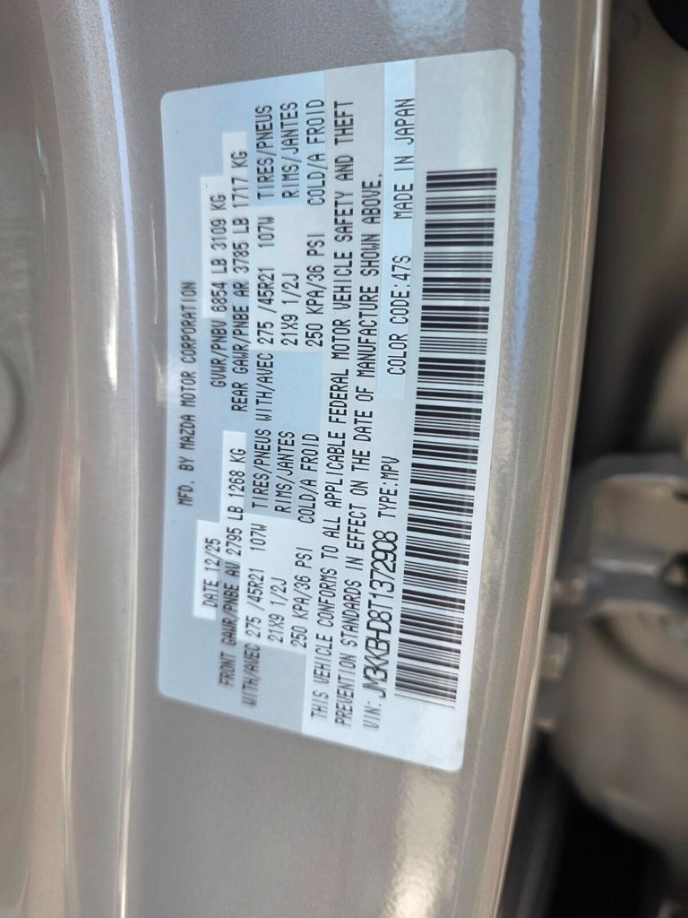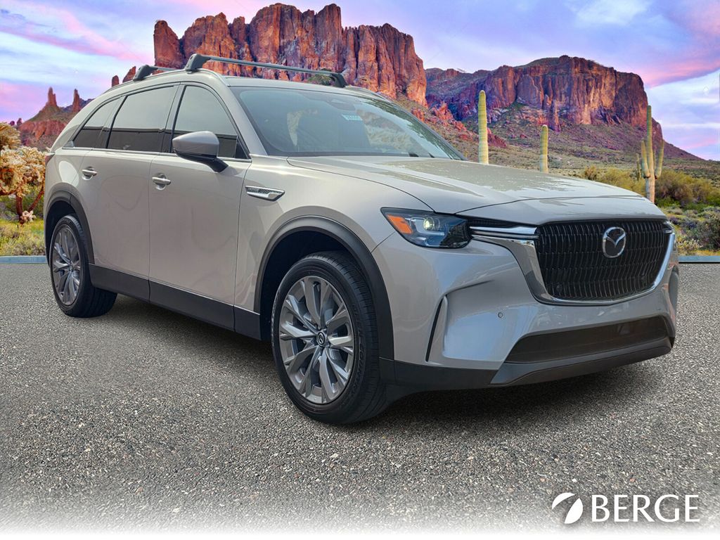 Serving The Valley For Over 40 Years! This Mazda CX-90 is equipped with the following features: 3rd row seats: bench, 4-Wheel Disc Brakes, 8 Speakers, ABS brakes, Air Conditioning, Alloy wheels, AM/FM radio, Auto High-beam Headlights, Automatic temperature control, Brake assist, Bumpers: body-color, Cargo Net, Compass, Cross Bars - Silver, Delay-off headlights, Driver door bin, Driver vanity mirror, Dual front impact airbags, Dual front side impact airbags, E911 Automatic Emergency Notification, Electronic Stability Control, Emergency communication system: MAZDA CONNECT, Exterior Parking Camera Rear, Four wheel independent suspension, Front anti-roll bar, Front Bucket Seats, Front Center Armrest w/Storage, Front dual zone A/C, Front reading lights, Fully automatic headlights, Heated door mirrors, Heated front seats, Heated rear seats, Heated steering wheel, Heated/Ventilated Front Bucket Seats, Illuminated entry, Infotainment System Voice Command, Knee airbag, Leather Seat Trim, Leather Shift Knob, Leather steering wheel, Low tire pressure warning, Mazda Connected Services, Memory seat, Occupant sensing airbag, Outside temperature display, Overhead airbag, Overhead console, Panic alarm, Passenger door bin, Passenger vanity mirror, Power door mirrors, Power driver seat, Power Liftgate, Power moonroof, Power passenger seat, Power steering, Power windows, Premier Carpet Set - Bench Seat, Premium Carpet Floor Mats, Radio Broadcast Data System Program Information, Radio data system, Radio: : AM/FM w/HD/8-Speaker Sound System, Rain sensing wipers, Rear air conditioning, Rear anti-roll bar, Rear reading lights, Rear seat center armrest, Rear window defroster, Rear window wiper, Remote keyless entry, SMS Text Msg Audio Delivery and Reply, Speed control, Speed-sensing steering, Split folding rear seat, Spoiler, Steering wheel mounted audio controls, Tachometer, Telescoping steering wheel, Tilt steering wheel, Traction control, Trip computer, Turn signal indicator mirrors, Variably intermittent wipers, Ventilated front seats, Wheel Locks, and Wheels: 21" x 9.5J Silver Metallic Aluminum Alloy.