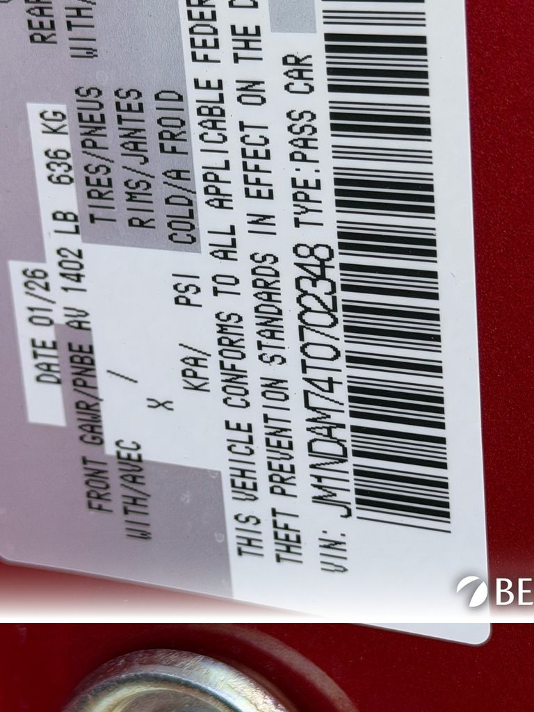 - VIN : JM1NDAM74T0702348