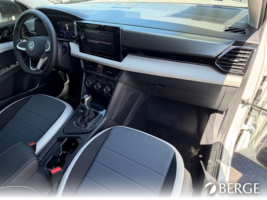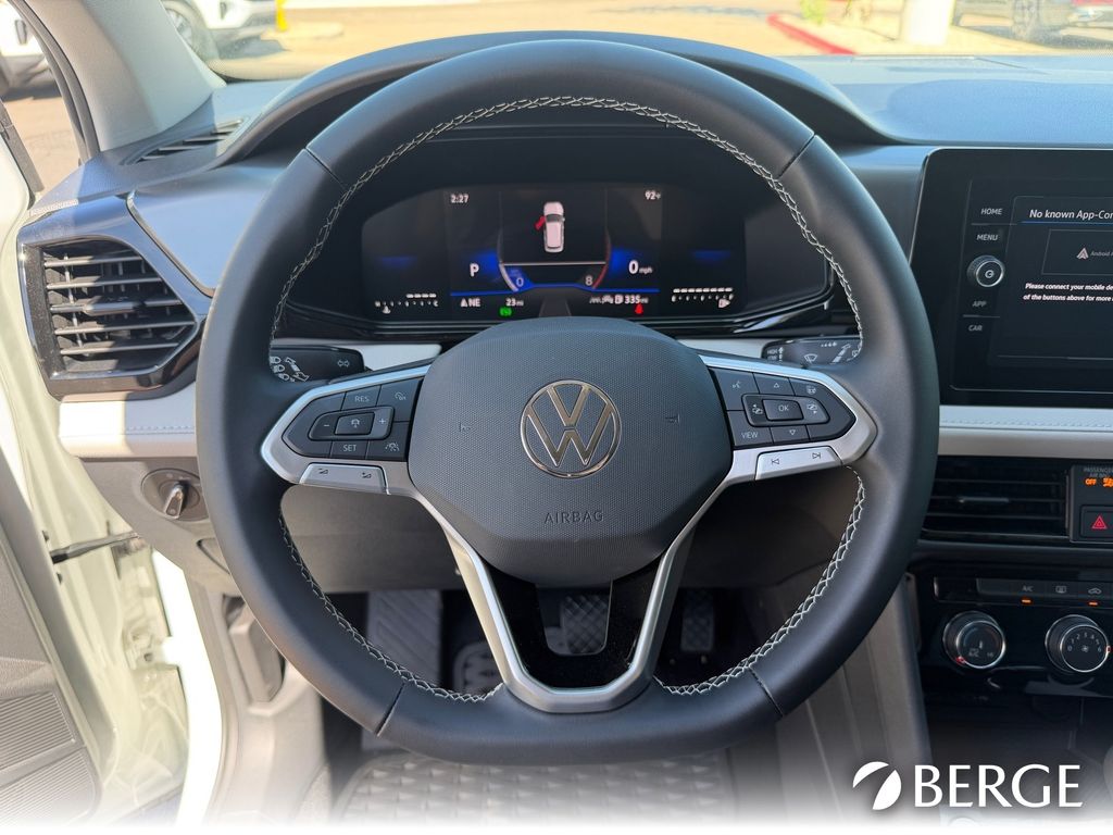 Serving The Valley For Over 40 Years! This Volkswagen Taos is equipped with the following features: 4-Wheel Disc Brakes, 6 Speakers, ABS brakes, Active Blind Spot Monitor, Air Conditioning, Alloy wheels, AM/FM radio, Auto High-beam Headlights, Brake assist, Bumpers: body-color, Cloth Seating Surfaces, Compass, Delay-off headlights, Driver door bin, Driver vanity mirror, Dual front impact airbags, Dual front side impact airbags, Electronic Stability Control, Emergency communication system: VW Car-Net Safe & Secure 5-year, Exterior Parking Camera Rear, Front anti-roll bar, Front Bucket Seats, Front Center Armrest, Front reading lights, Front Strut Rear Torsion Beam Suspension, Front wheel independent suspension, Fully automatic headlights, Heated steering wheel, Illuminated entry, Leather Shift Knob, Low tire pressure warning, Occupant sensing airbag, Outside temperature display, Overhead airbag, Overhead console, Panic alarm, Passenger door bin, Passenger vanity mirror, Power door mirrors, Power steering, Power windows, Radio data system, Radio: MIB3 Composition Color AM/FM, Rain sensing wipers, Rear anti-roll bar, Rear seat center armrest, Rear window defroster, Rear window wiper, Remote keyless entry, Speed control, Speed-sensing steering, Split folding rear seat, Spoiler, Steering wheel mounted audio controls, Tachometer, Telescoping steering wheel, Tilt steering wheel, Traction control, Trip computer, Variably intermittent wipers, and Wheels: 17" Dark Silver Painted Alloy.