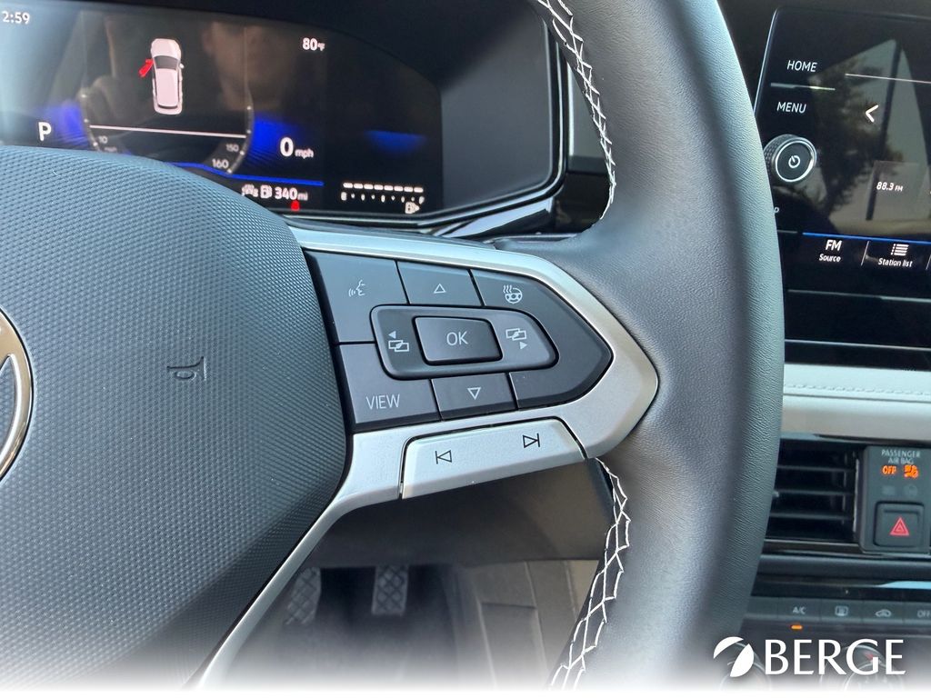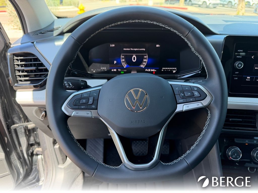 Serving The Valley For Over 40 Years! This Volkswagen Taos is equipped with the following features: 4-Wheel Disc Brakes, 6 Speakers, ABS brakes, Active Blind Spot Monitor, Air Conditioning, Alloy wheels, AM/FM radio, Auto High-beam Headlights, Brake assist, Bumpers: body-color, Cloth Seating Surfaces, Compass, Delay-off headlights, Driver door bin, Driver vanity mirror, Dual front impact airbags, Dual front side impact airbags, Electronic Stability Control, Emergency communication system: VW Car-Net Safe & Secure 5-year, Exterior Parking Camera Rear, Front anti-roll bar, Front Bucket Seats, Front Center Armrest, Front reading lights, Front Strut Rear Torsion Beam Suspension, Front wheel independent suspension, Fully automatic headlights, Heated steering wheel, Illuminated entry, Leather Shift Knob, Low tire pressure warning, Occupant sensing airbag, Outside temperature display, Overhead airbag, Overhead console, Panic alarm, Passenger door bin, Passenger vanity mirror, Power door mirrors, Power steering, Power windows, Radio data system, Radio: MIB3 Composition Color AM/FM, Rain sensing wipers, Rear anti-roll bar, Rear seat center armrest, Rear window defroster, Rear window wiper, Remote keyless entry, Speed control, Speed-sensing steering, Split folding rear seat, Spoiler, Steering wheel mounted audio controls, Tachometer, Telescoping steering wheel, Tilt steering wheel, Traction control, Trip computer, Variably intermittent wipers, and Wheels: 17" Dark Silver Painted Alloy.