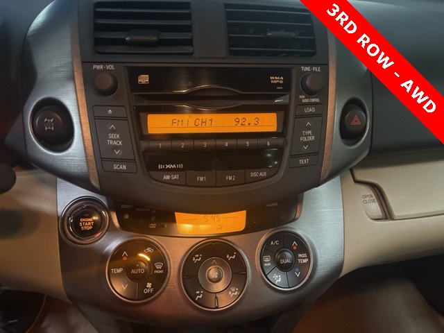 Serving The Valley For Over 40 Years! This Toyota RAV4 is equipped with the following features: 3.5L V6 DOHC, 4WD, Sand Beige Cloth, 17" 6 Spoke Aluminum Wheels, 3.08 Axle Ratio, 4-Wheel Disc Brakes, 6 Speakers, ABS brakes, Air Conditioning, Alloy wheels, AM/FM 6 CD Player, AM/FM radio, Anti-whiplash front head restraints, Automatic temperature control, Brake assist, Bumpers: body-color, CD player, Driver door bin, Driver vanity mirror, Dual front impact airbags, Dual front side impact airbags, Electronic Stability Control, Fabric Seat Trim, Four wheel independent suspension, Front anti-roll bar, Front Bucket Seats, Front Center Armrest w/Storage, Front dual zone A/C, Front fog lights, Front reading lights, Fully automatic headlights, Heated door mirrors, Illuminated entry, Leather Shift Knob, Leather steering wheel, Low tire pressure warning, Occupant sensing airbag, Outside temperature display, Overhead airbag, Overhead console, Panic alarm, Passenger door bin, Passenger vanity mirror, Power door mirrors, Power Seat, Power steering, Power windows, Rear anti-roll bar, Rear seat center armrest, Rear window defroster, Rear window wiper, Remote keyless entry, Roof rack, Speed control, Speed-sensing steering, Split folding rear seat, Spoiler, Steering wheel mounted audio controls, Tachometer, Telescoping steering wheel, Third Row 50/50 Split Seat, Tilt steering wheel, Traction control, Turn signal indicator mirrors, and Variably intermittent wipers.