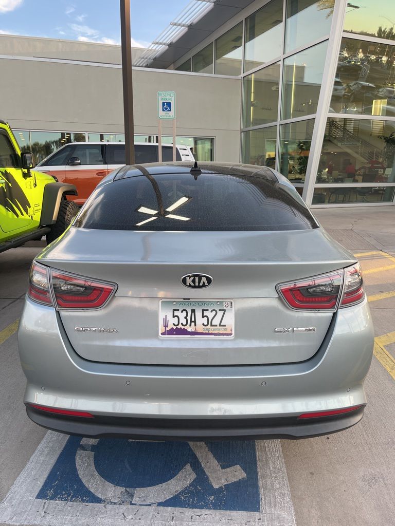 Serving The Valley For Over 40 Years! This Kia Optima Hybrid is equipped with the following features: Technology Package (Back-Up Warning System, Blind Spot Detection w/Rear Cross-Traffic Alert, and Panoramic Sunroof w/Gloss Black B-Pillar), 2.4L I4 MPI Hybrid Electric DOHC, 17" Alloy Wheels, 4-Wheel Disc Brakes, 8 Speakers, ABS brakes, Air Conditioning, Alloy wheels, AM/FM radio: SiriusXM, Auto-dimming Rear-View mirror, Automatic temperature control, Brake assist, Bumpers: body-color, CD player, Delay-off headlights, Driver door bin, Driver vanity mirror, Dual front impact airbags, Dual front side impact airbags, Electronic Stability Control, Exterior Parking Camera Rear, Four wheel independent suspension, Front anti-roll bar, Front Bucket Seats, Front Center Armrest, Front dual zone A/C, Front fog lights, Front reading lights, Fully automatic headlights, Heated & Ventilated Front Seats, Heated door mirrors, Heated front seats, Heated rear seats, Heated steering wheel, High intensity discharge headlights: Xenon, Illuminated entry, Infinity AM/FM/CD/MP3 Audio System w/Navigation, Leather Seat Trim, Leather Shift Knob, Leather steering wheel, Low tire pressure warning, Memory seat, Navigation System, Occupant sensing airbag, Outside temperature display, Overhead airbag, Overhead console, Panic alarm, Passenger door bin, Passenger vanity mirror, Power door mirrors, Power driver seat, Power passenger seat, Power steering, Power windows, Rear anti-roll bar, Rear reading lights, Rear seat center armrest, Rear window defroster, Remote keyless entry, Security system, Speed control, Speed-sensing steering, Steering wheel mounted audio controls, Tachometer, Telescoping steering wheel, Tilt steering wheel, Traction control, Trip computer, Turn signal indicator mirrors, Variably intermittent wipers, and Ventilated front seats.