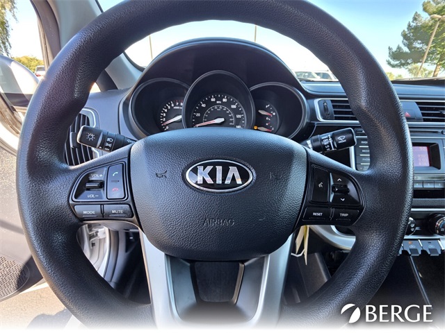 Serving The Valley For Over 40 Years! This Kia Rio is equipped with the following features: Power Package (Power Door Locks w/Remote Keyless Entry and Power Windows), Black Cloth, 15" x 5.5j Steel Wheels w/Full Covers, 4 Speakers, 4-Wheel Disc Brakes, ABS brakes, Air Conditioning, AM/FM radio: SiriusXM, Brake assist, Bumpers: body-color, Cargo Net, Carpet Floor Mat, CD player, Driver door bin, Driver vanity mirror, Dual front impact airbags, Dual front side impact airbags, Electronic Stability Control, Front anti-roll bar, Front Bucket Seats, Front wheel independent suspension, Heated door mirrors, Low tire pressure warning, Occupant sensing airbag, Outside temperature display, Overhead airbag, Passenger door bin, Passenger vanity mirror, Power door mirrors, Power steering, Radio: AM/FM/CD MP3 Audio System, Rear window defroster, Speed-sensing steering, Split folding rear seat, Steering wheel mounted audio controls, Tachometer, Tilt steering wheel, Traction control, Trip computer, Variably intermittent wipers, and Woven Cloth Seat Trim.