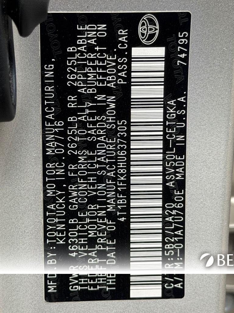 - VIN : 4T1BF1FK8HU637305