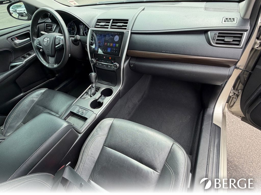 Serving The Valley For Over 40 Years! This Toyota Camry is equipped with the following features: Advanced Technology Package, Carpeted Floor Mats & Trunk Mat Package, Convenience Package, Moonroof Package, Preferred Accessory Package (Z4) (First Aid Kit and Hide Away Cargo Net/Cargo Net), Black Leather, 10 Speakers, 4-Wheel Disc Brakes, 7.0J x 17" Alloy Wheels, ABS brakes, Air Conditioning, Alloy wheels, AM/FM radio: SiriusXM, Automatic temperature control, Blind Spot Monitor, Brake assist, Bumpers: body-color, CD player, Delay-off headlights, Driver door bin, Driver vanity mirror, Dual front impact airbags, Dual front side impact airbags, Electronic Stability Control, Exterior Parking Camera Rear, Four wheel independent suspension, Front anti-roll bar, Front Bucket Seats, Front Center Armrest, Front dual zone A/C, Front reading lights, Fully automatic headlights, Heated door mirrors, Heated front seats, Illuminated entry, Knee airbag, Leather Seat Trim, Leather steering wheel, Low tire pressure warning, Multi-Stage Heated Front Bucket Seats, Occupant sensing airbag, Outside temperature display, Overhead airbag, Overhead console, Panic alarm, Passenger door bin, Passenger vanity mirror, Power door mirrors, Power driver seat, Power passenger seat, Power steering, Power windows, Radio: Entune Audio Plus w/Connected Nav/JBL Audio, Radio: Entune Premium JBL Audio w/Nav & App Suite, Rear anti-roll bar, Rear reading lights, Rear seat center armrest, Rear side impact airbag, Rear window defroster, Remote keyless entry, Safety Connect w/Mayday System, Speed control, Speed-sensing steering, Split folding rear seat, Steering wheel mounted audio controls, Tachometer, Telescoping steering wheel, Tilt steering wheel, Traction control, Trip computer, and Variably intermittent wipers.