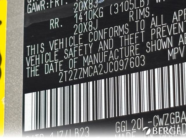 - VIN : 2T2ZZMCA2JC097603