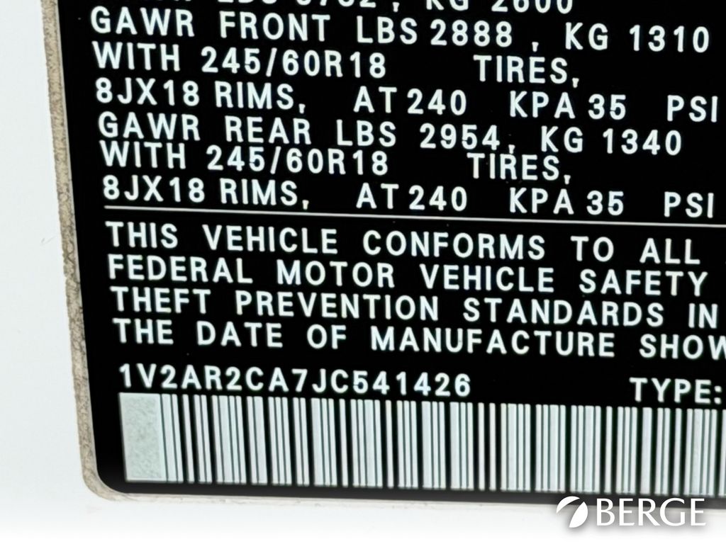 - VIN : 1V2AR2CA7JC541426