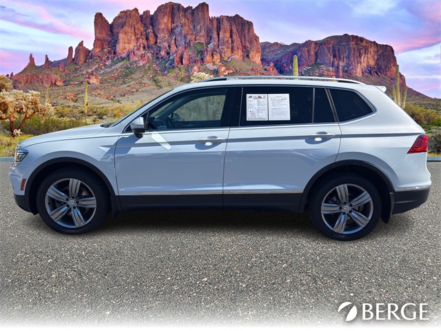Serving The Valley For Over 40 Years! This Volkswagen Tiguan is equipped with the following features: 3-Row Rubber Mats Kit, 3.33 Axle Ratio, 3rd row seats: bench, 4-Wheel Disc Brakes, 9 Speakers, ABS brakes, Air Conditioning, Alloy wheels, Alternate Front Grille, AM/FM radio: SiriusXM, Auto High-beam Headlights, Auto-dimming Rear-View mirror, Automatic temperature control, Brake assist, Bumpers: body-color, Compass, Delay-off headlights, Driver door bin, Driver vanity mirror, Dual front impact airbags, Dual front side impact airbags, Electronic Stability Control, Emergency communication system: VW Car-Net, Exterior Parking Camera Rear, Four wheel independent suspension, Frameless Self-Dimming Rearview Mirror w/HomeLink, Front anti-roll bar, Front Bucket Seats, Front Center Armrest, Front dual zone A/C, Front fog lights, Front reading lights, Fully automatic headlights, Heated door mirrors, Heated Front Bucket Seats, Heated front seats, Heated steering wheel, Illuminated entry, Leather Shift Knob, Low tire pressure warning, Luggage Net, Memory seat, Navigation System, Occupant sensing airbag, Outside temperature display, Overhead airbag, Overhead console, Panic alarm, Passenger door bin, Passenger vanity mirror, Power door mirrors, Power driver seat, Power Liftgate, Power moonroof, Power steering, Power windows, Radio data system, Radio: AM/FM/HD/CD w/Dual USB Inputs, Rain sensing wipers, Rear anti-roll bar, Rear reading lights, Rear seat center armrest, Rear window defroster, Rear window wiper, Remote CD player, Remote keyless entry, Roadside Assistance Kit, Roof rack: rails only, Security system, Speed control, Speed-sensing steering, Split folding rear seat, Spoiler, Steering wheel mounted audio controls, Tachometer, Telescoping steering wheel, Tilt steering wheel, Traction control, Trip computer, Turn signal indicator mirrors, Variably intermittent wipers, Vienna Leather Seating Surfaces, Wheel Splash Guards (Set of 4), and Wheels: 19" Victoria Falls Alloy.