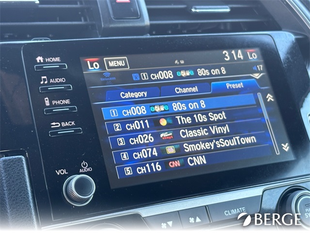 Serving The Valley For Over 40 Years! This Honda Civic is equipped with the following features: Cloth, 17" Alloy Wheels, 4-Wheel Disc Brakes, 8 Speakers, ABS brakes, Air Conditioning, Alloy wheels, AM/FM radio: SiriusXM, Apple CarPlay/Android Auto, Automatic temperature control, Brake assist, Bumpers: body-color, Delay-off headlights, Driver door bin, Driver vanity mirror, Dual front impact airbags, Dual front side impact airbags, Electronic Stability Control, Emergency communication system: HondaLink, Exterior Parking Camera Rear, Fabric Seating Surfaces, Forward collision: Collision Mitigation Braking System (CMBS) + FCW mitigation, Four wheel independent suspension, Front anti-roll bar, Front Bucket Seats, Front Center Armrest, Front dual zone A/C, Front fog lights, Front reading lights, Fully automatic headlights, Heated door mirrors, Illuminated entry, Low tire pressure warning, Occupant sensing airbag, Outside temperature display, Overhead airbag, Overhead console, Panic alarm, Passenger door bin, Passenger vanity mirror, Power door mirrors, Power moonroof, Power steering, Power windows, Radio data system, Radio: 180-Watt HD Audio System, Rear anti-roll bar, Rear seat center armrest, Rear window defroster, Rear window wiper, Reclining Front Bucket Seats, Remote keyless entry, Security system, Speed control, Speed-sensing steering, Split folding rear seat, Spoiler, Steering wheel mounted audio controls, Tachometer, Telescoping steering wheel, Tilt steering wheel, Traction control, Trip computer, and Variably intermittent wipers.