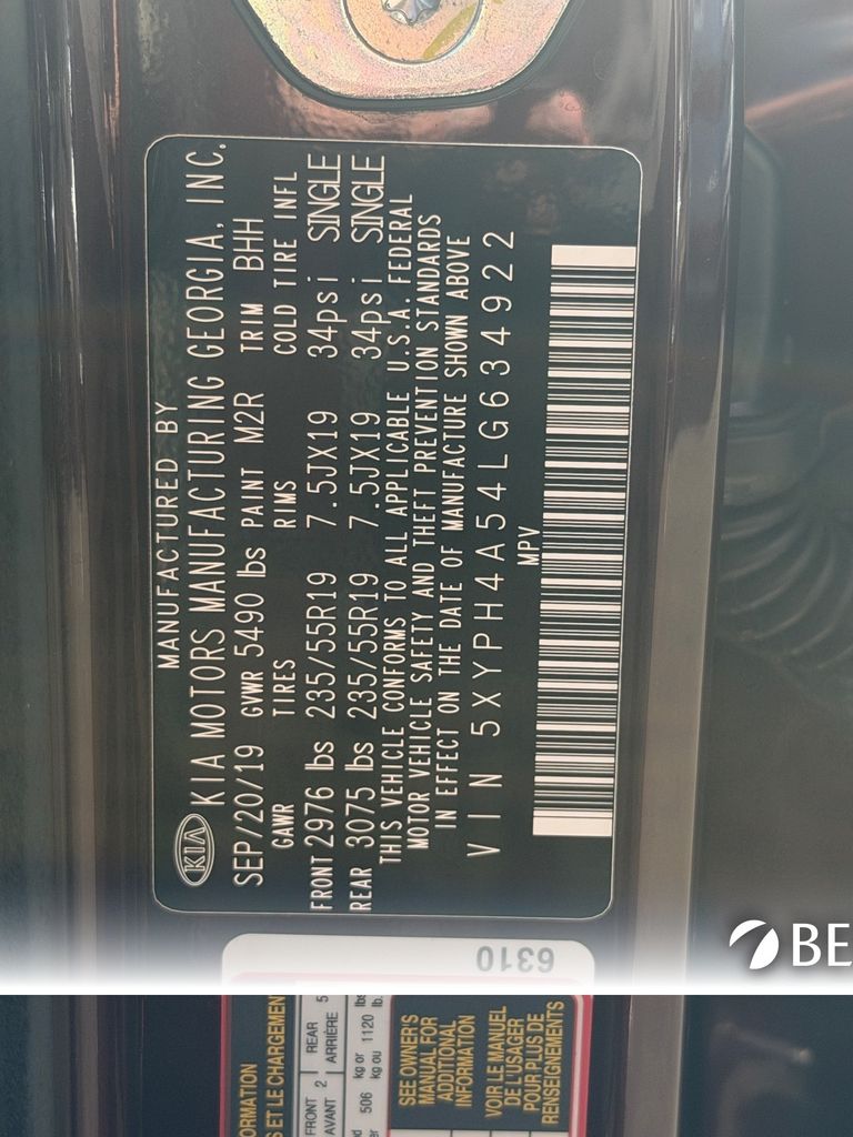 - VIN : 5XYPH4A54LG634922