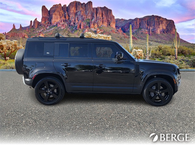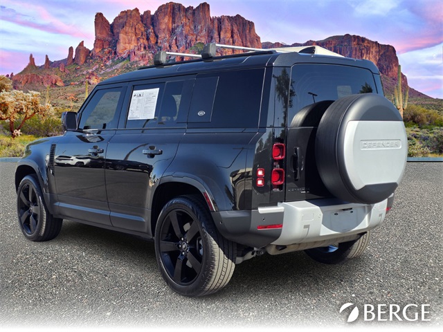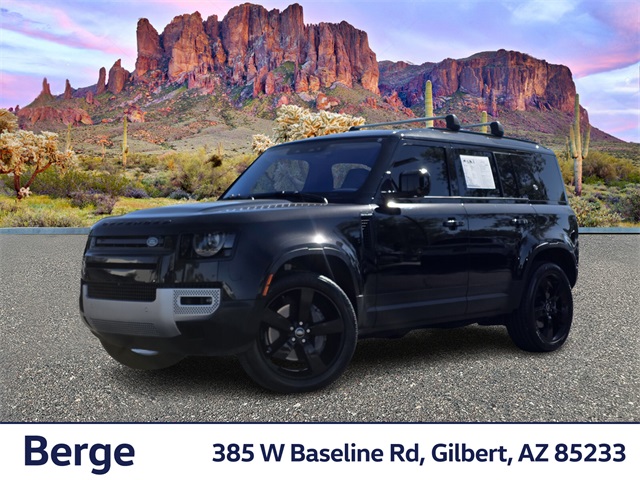Serving The Valley For Over 40 Years! This Land Rover Defender 110 is equipped with the following features: Black Pack (Gloss Black Grille Bar), Towing Pack (Advanced Tow Assist and Trailer Hitch w/Electrical Connector), Appearance Pack, Wheels: 22" Gloss Black Style 5098, 11 Speakers, 12-Way Electric Memory Seats, 3.6 Axle Ratio, 4-Wheel Disc Brakes, ABS brakes, Adaptive Cruise Control, Adaptive suspension, Air Conditioning, Alloy wheels, AM/FM radio, Apple CarPlay & Android Auto, Auto High-beam Headlights, Auto tilt-away steering wheel, Auto-dimming door mirrors, Auto-dimming Rear-View mirror, Automatic temperature control, Brake assist, Bumpers: body-color, Compass, Delay-off headlights, Driver door bin, Driver vanity mirror, Dual front impact airbags, Dual front side impact airbags, Electronic Stability Control, Four wheel independent suspension, Front anti-roll bar, Front Bucket Seats, Front Center Armrest, Front dual zone A/C, Front fog lights, Front reading lights, Fully automatic headlights, Garage door transmitter: HomeLink, Grained Leather Seat Trim, Heated door mirrors, Illuminated entry, Leather Shift Knob, Leather steering wheel, Low tire pressure warning, Memory seat, Navigation system: Connected Navigation PIVI Pro, Occupant sensing airbag, Opening Panoramic Sunroof, Outside temperature display, Overhead airbag, Overhead console, Panic alarm, Passenger door bin, Passenger vanity mirror, Power door mirrors, Power driver seat, Power passenger seat, Power steering, Power windows, Radio data system, Radio: 400W 11 Speaker Meridian Sound System, Rain sensing wipers, Rear anti-roll bar, Rear fog lights, Rear reading lights, Rear seat center armrest, Rear window defroster, Rear window wiper, Remote keyless entry, Roof rack: rails only, Security system, SiriusXM Satellite Radio & HD Radio, Speed control, Speed-sensing steering, Speed-Sensitive Wipers, Split folding rear seat, Steering wheel memory, Steering wheel mounted audio controls, Tachometer, Telescoping steering wheel, Tilt steering wheel, Traction control, Trip computer, Variably intermittent wipers, and Weather band radio.