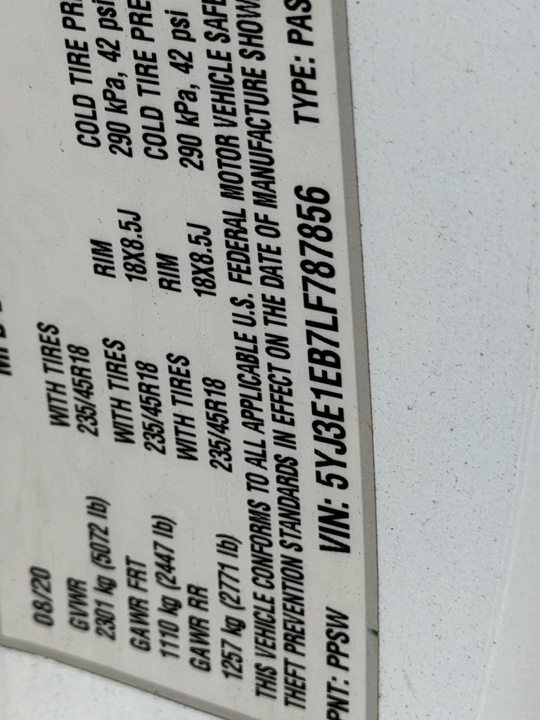 - VIN : 5YJ3E1EB7LF787856