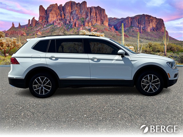 Serving The Valley For Over 40 Years! This Volkswagen Tiguan is equipped with the following features: AWD, 2-Row Rubber Monster Mats w/Logo Kit (Set of 4), 3.33 Axle Ratio, 4-Wheel Disc Brakes, 4-Wheel Independent Suspension, 6 Speakers, ABS brakes, Air Conditioning, Alloy wheels, AM/FM radio: SiriusXM, Automatic temperature control, Brake assist, Bumpers: body-color, Compass, Delay-off headlights, Driver door bin, Driver vanity mirror, Dual front impact airbags, Dual front side impact airbags, Electronic Stability Control, Emergency communication system: VW Car-Net services (capabilities require enrollment or subscription), Exterior Parking Camera Rear, First Aid Kit, Forward collision: FCW w/Autonomous Emergency Braking mitigation, Four wheel independent suspension, Front anti-roll bar, Front Bucket Seats, Front Center Armrest, Front dual zone A/C, Front reading lights, Fully automatic headlights, Heated door mirrors, Heated Front Comfort Seats, Heated front seats, Heavy Duty Trunk Liner w/VW CarGo Blocks, Illuminated entry, Leather Shift Knob, Low tire pressure warning, Occupant sensing airbag, Outside temperature display, Overhead airbag, Overhead console, Panic alarm, Passenger door bin, Passenger vanity mirror, Perforated V-Tex Leatherette Seating Surfaces, Power door mirrors, Power driver seat, Power steering, Power windows, Radio data system, Radio: Composition Media AM/FM/HD, Rear anti-roll bar, Rear reading lights, Rear seat center armrest, Rear window defroster, Rear window wiper, Remote keyless entry, Roadside Assistance Kit, Roof rack: rails only, Security system, Speed control, Speed-sensing steering, Split folding rear seat, Spoiler, Steering wheel mounted audio controls, Tachometer, Telescoping steering wheel, Tilt steering wheel, Traction control, Trip computer, Turn signal indicator mirrors, Variably intermittent wipers, VW App-Connect (w/Apple CarPlay, Android Auto & MirrorLink), and Wheels: 17" Multi-Spoke 2-Tone Alloy.