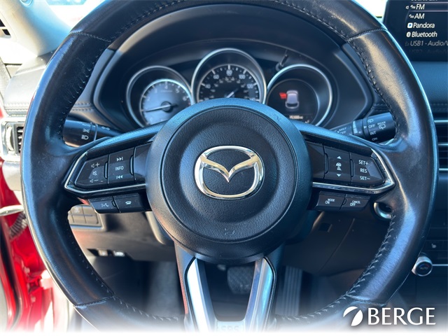 Serving The Valley For Over 40 Years! This Mazda CX-5 is equipped with the following features: 4-Wheel Disc Brakes, 4.325 Axle Ratio, 6 Speakers, ABS brakes, Air Conditioning, Alloy wheels, AM/FM radio, AppLink/Apple CarPlay and Android Auto, Auto High-beam Headlights, Automatic temperature control, Bose 10-Speaker Premium Audio Sound System, Brake assist, Bumpers: body-color, Delay-off headlights, Driver door bin, Driver vanity mirror, Dual front impact airbags, Dual front side impact airbags, Electronic Stability Control, Emergency communication system: MAZDA CONNECT, Exterior Parking Camera Rear, Four wheel independent suspension, Front anti-roll bar, Front Bucket Seats, Front Center Armrest, Front dual zone A/C, Front reading lights, Fully automatic headlights, Heated Front Bucket Seats, Heated front seats, Illuminated entry, Leather Seat Trim, Leather Shift Knob, Leatherette Seat Trim, Low tire pressure warning, Occupant sensing airbag, Outside temperature display, Overhead airbag, Overhead console, Panic alarm, Passenger door bin, Passenger vanity mirror, Power door mirrors, Power driver seat, Power steering, Power windows, Radio data system, Radio: AM/FM/HD Audio System, Rain sensing wipers, Rear anti-roll bar, Rear reading lights, Rear seat center armrest, Rear window defroster, Rear window wiper, Remote keyless entry, Soul Red Crystal Metallic Paint, Speed control, Speed-sensing steering, Split folding rear seat, Spoiler, Steering wheel mounted audio controls, Tachometer, Telescoping steering wheel, Tilt steering wheel, Traction control, Trip computer, Turn signal indicator mirrors, Variably intermittent wipers, and Wheels: 17" x 7J Aluminum Alloy.