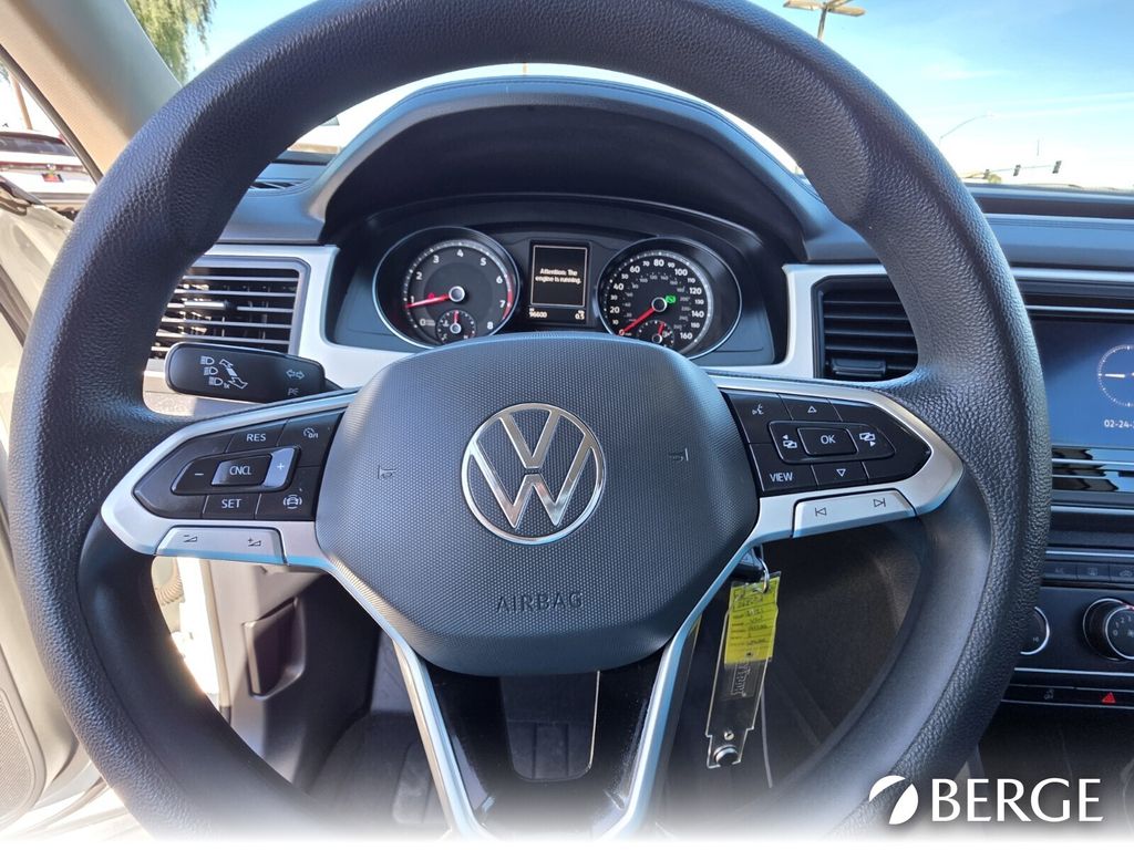 Serving The Valley For Over 40 Years! This Volkswagen Atlas is equipped with the following features: 3.60 Axle Ratio, 3rd row seats: split-bench, 4-Wheel Disc Brakes, 6 Speakers, ABS brakes, Air Conditioning, Alloy wheels, AM/FM radio, Auto-dimming Rear-View mirror, Brake assist, Bumpers: body-color, Carpeted Mats - Bench Seat, Cloth Seating Surfaces, Compass, Delay-off headlights, Driver door bin, Driver vanity mirror, Dual front impact airbags, Dual front side impact airbags, Electronic Stability Control, Emergency communication system: VW Car-Net services (capabilities require enrollment or subscription), Exterior Parking Camera Rear, First Aid Kit, Forward collision: FCW w/Autonomous Emergency Braking mitigation, Four wheel independent suspension, Front anti-roll bar, Front Bucket Seats, Front Center Armrest, Front fog lights, Front reading lights, Fully automatic headlights, Heated door mirrors, Illuminated entry, Low tire pressure warning, Luggage Net, Occupant sensing airbag, Outside temperature display, Overhead airbag, Overhead console, Panic alarm, Passenger door bin, Passenger vanity mirror, Power door mirrors, Power steering, Power windows, Radio data system, Radio: Composition Color w/6.5" Touchscreen, Rain sensing wipers, Rear anti-roll bar, Rear reading lights, Rear window defroster, Rear window wiper, Remote keyless entry, Roadside Assistance Kit, Roof rack: rails only, Speed control, Speed-sensing steering, Split folding rear seat, Spoiler, Standard Suspension, Steering wheel mounted audio controls, Tachometer, Telescoping steering wheel, Tilt steering wheel, Traction control, Trip computer, Turn signal indicator mirrors, Variably intermittent wipers, and Wheels: 18" 5-Spoke Silver Alloy.