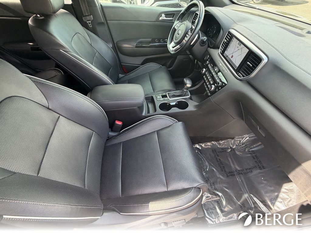 Serving The Valley For Over 40 Years! This Kia Sportage is equipped with the following features: Paint Protection Package (Rear Bumper Applique), 19" Alloy Wheels, 4-Wheel Disc Brakes, 8 Speakers, ABS brakes, Air Conditioning, Alloy wheels, AM/FM radio: SiriusXM, Apple CarPlay & Android Auto, Auto High-beam Headlights, Auto-dimming Rear-View mirror, Automatic temperature control, Axle Ratio: 3.32, Brake assist, Bumpers: body-color, Cargo Cover, Cargo Mat, Carpeted Floor Mats, Compass, Delay-off headlights, Driver door bin, Driver vanity mirror, Dual front impact airbags, Dual front side impact airbags, Electronic Stability Control, Emergency communication system: UVO Link, Exterior Parking Camera Rear, Four wheel independent suspension, Front anti-roll bar, Front Bucket Seats, Front Center Armrest, Front dual zone A/C, Front fog lights, Front reading lights, Fully automatic headlights, Garage door transmitter: HomeLink, harman/kardon Speakers, Heated & Ventilated Front Bucket Seats, Heated door mirrors, Heated front seats, Heated steering wheel, Illuminated entry, Leather Seat Trim, Leather Shift Knob, Leather steering wheel, Low tire pressure warning, Mud Guards, Navigation System, Occupant sensing airbag, Outside temperature display, Overhead airbag, Overhead console, Panic alarm, Passenger door bin, Passenger vanity mirror, Power door mirrors, Power driver seat, Power Liftgate, Power moonroof, Power passenger seat, Power steering, Power windows, Radio: AM/FM/SiriusXM Audio System, Rear anti-roll bar, Rear seat center armrest, Rear window defroster, Rear window wiper, Remote keyless entry, Roof rack: rails only, Security system, Speed control, Speed-sensing steering, Split folding rear seat, Spoiler, Sport steering wheel, Steering wheel mounted audio controls, Tachometer, Telescoping steering wheel, Tilt steering wheel, Traction control, Trip computer, Turn signal indicator mirrors, Variably intermittent wipers, and Ventilated front seats.
