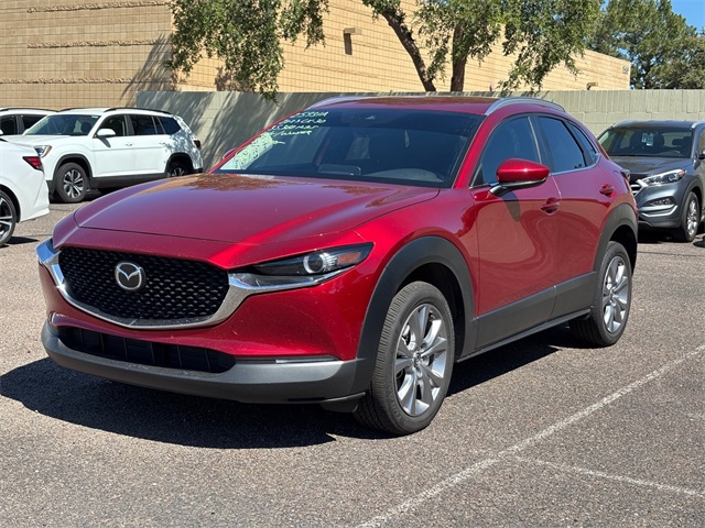 Serving The Valley For Over 40 Years! This Mazda CX-30 is equipped with the following features: 4-Wheel Disc Brakes, 4.095 Axle Ratio, 8 Speakers, ABS brakes, Air Conditioning, Alloy wheels, AM/FM radio, AppLink/Apple CarPlay and Android Auto, Auto High-beam Headlights, Automatic temperature control, Brake assist, Bumpers: body-color, Compass, Delay-off headlights, Driver door bin, Driver vanity mirror, Dual front impact airbags, Dual front side impact airbags, Electronic Stability Control, Emergency communication system: Mazda Connected Services (3-year complimentary trial included), Exterior Parking Camera Rear, Front anti-roll bar, Front Bucket Seats, Front Center Armrest, Front dual zone A/C, Front reading lights, Front wheel independent suspension, Fully automatic headlights, Illuminated entry, Knee airbag, Leather Shift Knob, Leather steering wheel, Leatherette Seat Trim, Low tire pressure warning, MAZDA CONNECT Infotainment System, Occupant sensing airbag, Outside temperature display, Overhead airbag, Panic alarm, Passenger door bin, Passenger vanity mirror, Power door mirrors, Power steering, Power windows, Radio data system, Radio: AM/FM/HD Audio System, Rain sensing wipers, Rear seat center armrest, Rear side impact airbag, Rear window defroster, Rear window wiper, Remote keyless entry, Soul Red Crystal Metallic Paint, Speed control, Speed-sensing steering, Split folding rear seat, Spoiler, Stainless Steel Rear Bumper Guard, Steering wheel mounted audio controls, Tachometer, Telescoping steering wheel, Tilt steering wheel, Traction control, Trip computer, Turn signal indicator mirrors, Variably intermittent wipers, and Wheels: 18" x 7J Aluminum Alloy.