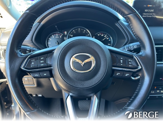 Serving The Valley For Over 40 Years! This Mazda CX-5 is equipped with the following features: 10 Speakers, 4-Wheel Disc Brakes, 4.624 Axle Ratio, ABS brakes, Air Conditioning, Alloy wheels, AM/FM radio: SiriusXM, AppLink/Apple CarPlay and Android Auto, Auto High-beam Headlights, Auto-dimming Rear-View mirror, Automatic temperature control, Brake assist, Bumpers: body-color, Delay-off headlights, Driver door bin, Driver vanity mirror, Dual front impact airbags, Dual front side impact airbags, E911 Automatic Emergency Notification, Electronic Stability Control, Emergency communication system: MAZDA CONNECT, Exterior Parking Camera Rear, Four wheel independent suspension, Front anti-roll bar, Front Bucket Seats, Front Center Armrest w/Storage, Front dual zone A/C, Front reading lights, Fully automatic headlights, Garage door transmitter: HomeLink, Heated door mirrors, Heated Front Bucket Seats, Heated front seats, Illuminated entry, Infotainment System Voice Command, Leather Seat Trim, Leather Shift Knob, Low tire pressure warning, Memory seat, Multifunction Commander Control, Occupant sensing airbag, Outside temperature display, Overhead airbag, Overhead console, Pandora, Panic alarm, Passenger door bin, Passenger vanity mirror, Power door mirrors, Power driver seat, Power Liftgate, Power moonroof, Power passenger seat, Power steering, Power windows, Radio Broadcast Data System Program Information, Radio data system, Radio: AM/FM/HD Audio System, Rain sensing wipers, Rear anti-roll bar, Rear reading lights, Rear seat center armrest, Rear window defroster, Rear window wiper, Remote keyless entry, SMS Text Msg Audio Delivery & Reply, Speed control, Speed-sensing steering, Split folding rear seat, Spoiler, Steering wheel mounted audio controls, Tachometer, Telescoping steering wheel, Tilt steering wheel, Traction control, Trip computer, Turn signal indicator mirrors, Variably intermittent wipers, and Wheels: 19" x 7J Aluminum Alloy.