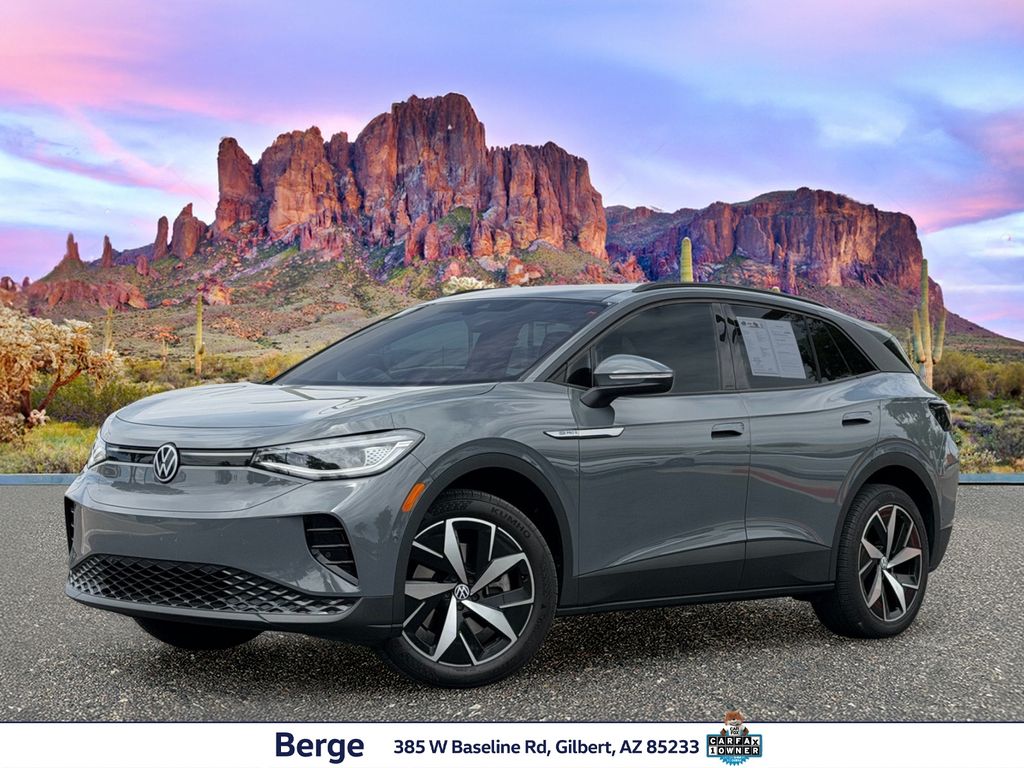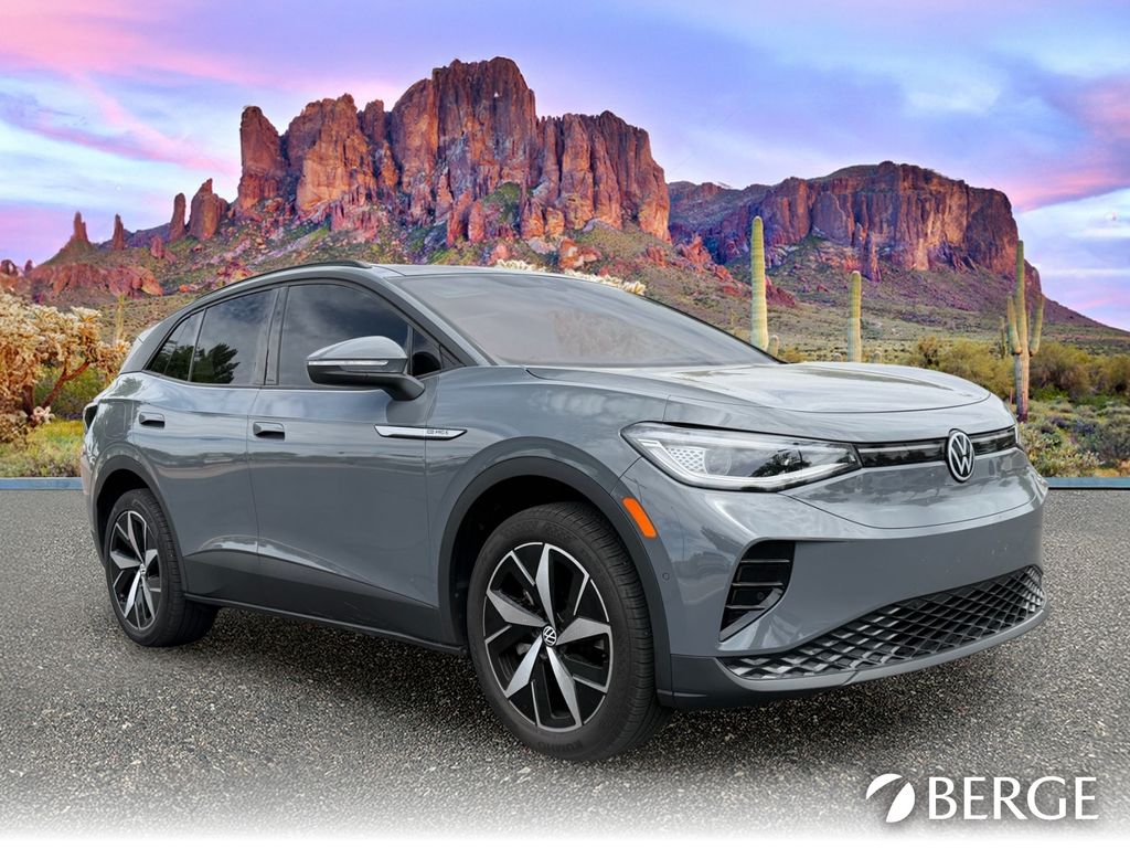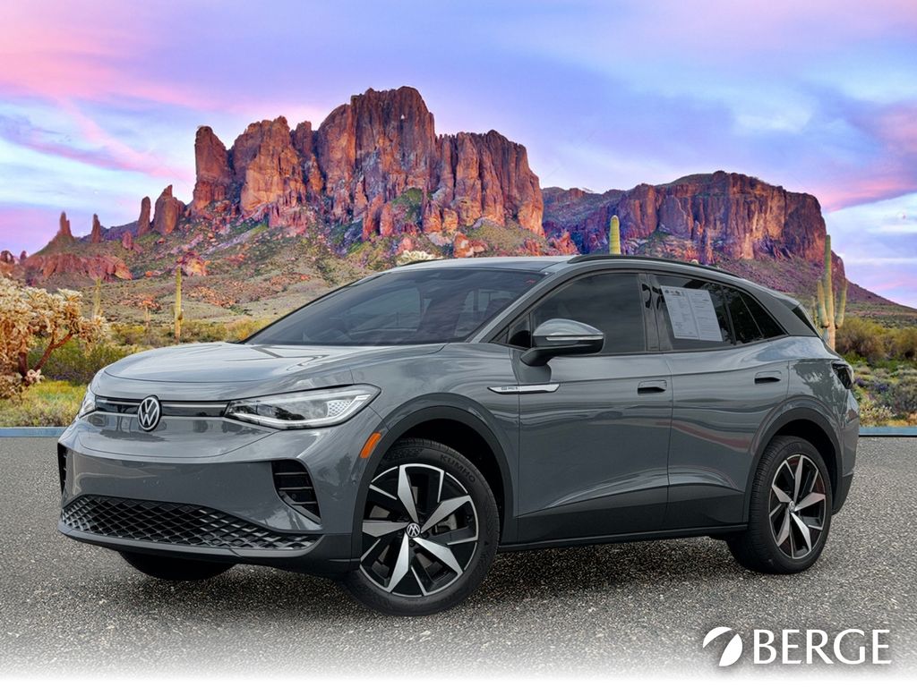 Serving The Valley For Over 40 Years! This Volkswagen ID.4 is equipped with the following features: 3.90 Axle Ratio, 4 Wheel Independent Suspension, 7 Speakers, ABS brakes, Air Conditioning, Alloy wheels, Auto High-beam Headlights, Auto-dimming Rear-View mirror, Automatic temperature control, Brake assist, Bumpers: body-color, Delay-off headlights, Driver door bin, Driver vanity mirror, Driver's Seat Mounted Armrest, Dual front impact airbags, Dual front side impact airbags, Electronic Stability Control, Emergency communication system: VW Car-Net Safe & Secure 5-year, Exterior Parking Camera Rear, Four wheel independent suspension, Front anti-roll bar, Front Bucket Seats, Front dual zone A/C, Front fog lights, Front reading lights, Fully automatic headlights, Heated door mirrors, Heated Front Seats, Heated front seats, Heated steering wheel, Illuminated entry, Low tire pressure warning, Memory seat, Navigation System, Occupant sensing airbag, Outside temperature display, Overhead airbag, Overhead console, Panic alarm, Passenger door bin, Passenger seat mounted armrest, Passenger vanity mirror, Perforated V-Tex Leatherette Seating Surfaces, Power door mirrors, Power driver seat, Power Liftgate, Power passenger seat, Power steering, Power windows, Radio data system, Radio: Discover Pro Max w/12" Touchscreen Nav, Rain sensing wipers, Rear anti-roll bar, Rear reading lights, Rear seat center armrest, Rear window defroster, Rear window wiper, Remote keyless entry, Speed control, Speed-sensing steering, Split folding rear seat, Spoiler, Steering wheel mounted audio controls, Telescoping steering wheel, Tilt steering wheel, Traction control, Trip computer, Turn signal indicator mirrors, Variably intermittent wipers, and Wheels: 20" 5-Spoke 2-Tone Machined Alloy.