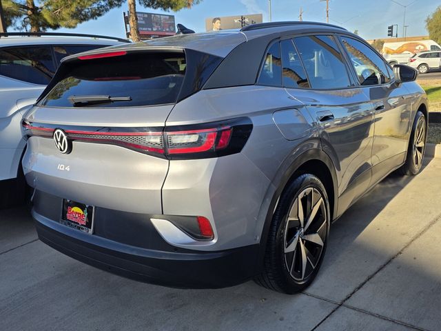 Serving The Valley For Over 40 Years! This Volkswagen ID.4 is equipped with the following features: Auto-Dimming Rearview Mirror w/HomeLink Connect, Navigation System, 4 Wheel Independent Suspension, 4.39 Axle Ratio, 7 Speakers, ABS brakes, Air Conditioning, Alloy wheels, Auto High-beam Headlights, Auto-dimming Rear-View mirror, Automatic temperature control, Brake assist, Bumpers: body-color, Delay-off headlights, Driver door bin, Driver vanity mirror, Driver's Seat Mounted Armrest, Dual front impact airbags, Dual front side impact airbags, Electronic Stability Control, Emergency communication system: VW Car-Net Safe & Secure 5-year, Exterior Parking Camera Rear, Four wheel independent suspension, Front anti-roll bar, Front Bucket Seats, Front dual zone A/C, Front reading lights, Fully automatic headlights, Heated door mirrors, Heated Front Seats, Heated front seats, Illuminated entry, Low tire pressure warning, Occupant sensing airbag, Outside temperature display, Overhead airbag, Overhead console, Panic alarm, Passenger door bin, Passenger seat mounted armrest, Passenger vanity mirror, Power door mirrors, Power steering, Power windows, Radio data system, Radio: Discover Pro Max w/12" Touchscreen Nav, Rain sensing wipers, Rear anti-roll bar, Rear reading lights, Rear window defroster, Rear window wiper, Remote keyless entry, Speed control, Speed-sensing steering, Split folding rear seat, Spoiler, Steering wheel mounted audio controls, Telescoping steering wheel, Tilt steering wheel, Traction control, Trip computer, Turn signal indicator mirrors, and Variably intermittent wipers.