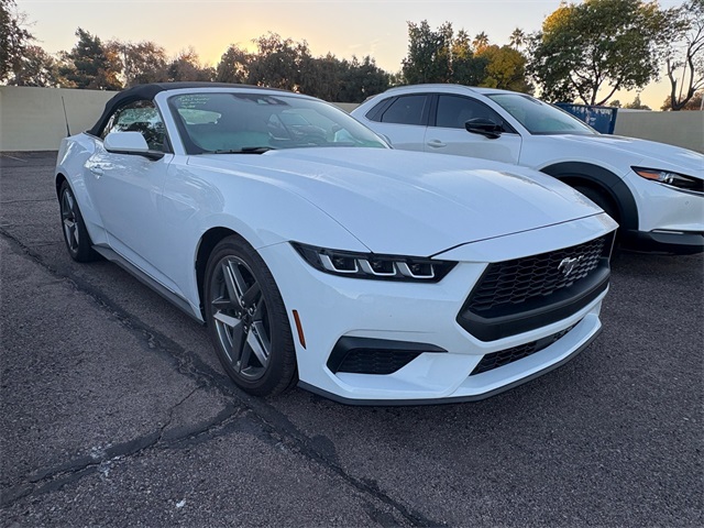 Serving The Valley For Over 40 Years! This Ford Mustang is equipped with the following features: Equipment Group 101A High Package (9-Speaker Stereo System, Dual-Zone Electronic Automatic Temperature Control, and SiriusXM w/360L & HD Radio), 4-Wheel Disc Brakes, 9 Speakers, ABS brakes, Air Conditioning, Alloy wheels, AM/FM radio: SiriusXM with 360L, AM/FM Stereo, Auto High-beam Headlights, Automatic temperature control, Brake assist, Bumpers: body-color, Cloth/Vinyl Bucket Seats, Compass, Convertible roof lining, Delay-off headlights, Driver door bin, Driver vanity mirror, Dual front impact airbags, Dual front side impact airbags, Electronic Stability Control, Emergency communication system: 911 Assist, Exterior Parking Camera Rear, Four wheel independent suspension, Front anti-roll bar, Front Bucket Seats, Front Center Armrest, Front dual zone A/C, Front reading lights, Fully automatic headlights, Glass rear window, Heated front seats, Illuminated entry, Knee airbag, Leather Shift Knob, Low tire pressure warning, Occupant sensing airbag, Outside temperature display, Overhead console, Panic alarm, Passenger door bin, Passenger vanity mirror, Power convertible roof, Power door mirrors, Power driver seat, Power steering, Power windows, Premium Floor Liners Front & Rear, Radio data system, Rain sensing wipers, Rear anti-roll bar, Rear Parking Sensors, Rear window defroster, Remote keyless entry, Security system, Speed control, Speed-sensing steering, Speed-Sensitive Wipers, Sport steering wheel, Steering wheel mounted audio controls, SYNC 4.0 QNX, Tachometer, Telescoping steering wheel, Tilt steering wheel, Traction control, Trip computer, Variably intermittent wipers, Voltmeter, Wheels: 18" x 8" Machined-Face Aluminum, and Wheels: 19" x 8.5" Premier Polished Aluminum.