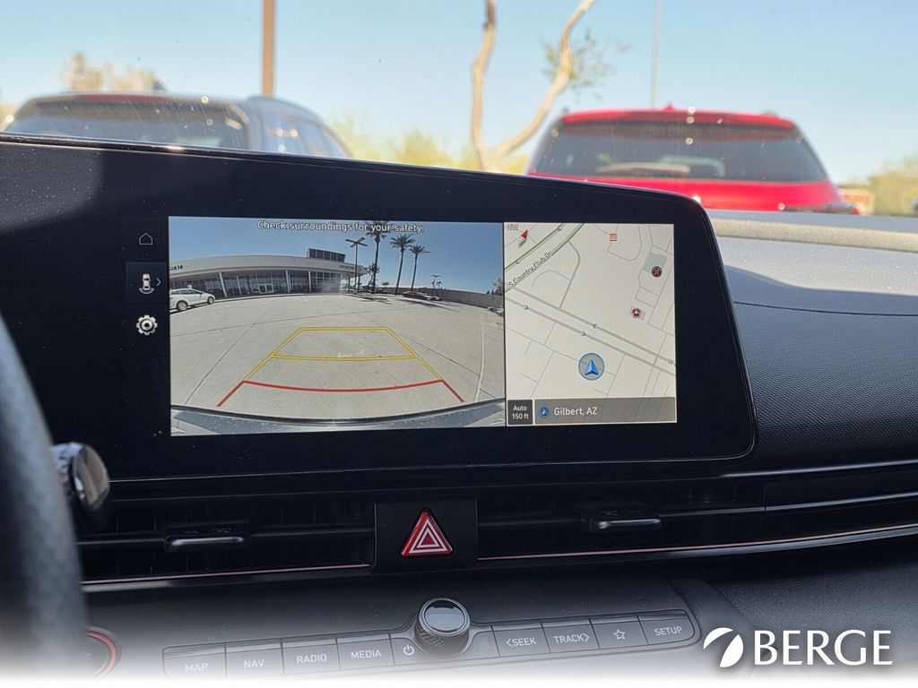 Serving The Valley For Over 40 Years! This Hyundai Elantra is equipped with the following features: Option Group 01, 18" x 7.5J Alloy Wheels, 4-Wheel Disc Brakes, 8 Speakers, ABS brakes, Air Conditioning, Alloy wheels, AM/FM radio: SiriusXM, Apple CarPlay & Android Auto, Auto High-beam Headlights, Automatic temperature control, Brake assist, Bumpers: body-color, Cargo Net, Carpeted Floor Mats, Combination Cloth & Leatherette Seating Surfaces, Delay-off headlights, Driver door bin, Driver vanity mirror, Dual front impact airbags, Dual front side impact airbags, Electronic Stability Control, Emergency communication system: Bluelink+, Exterior Parking Camera Rear, First Aid Kit, Four wheel independent suspension, Front anti-roll bar, Front Bucket Seats, Front Center Armrest, Front dual zone A/C, Front reading lights, Fully automatic headlights, Heated door mirrors, Heated front seats, Heated Front Sport Bucket Seats, Illuminated entry, Leather Shift Knob, Leather steering wheel, Low tire pressure warning, Navigation System, Occupant sensing airbag, Outside temperature display, Overhead airbag, Overhead console, Panic alarm, Passenger door bin, Passenger vanity mirror, Power door mirrors, Power driver seat, Power moonroof, Power steering, Power windows, Radio: AM/FM/HD/SiriusXM Display Audio, Rear anti-roll bar, Rear seat center armrest, Rear side impact airbag, Rear window defroster, Remote keyless entry, Reversible Cargo Tray, Security system, Speed control, Speed-sensing steering, Split folding rear seat, Spoiler, Sport steering wheel, Steering wheel mounted audio controls, Tachometer, Telescoping steering wheel, Tilt steering wheel, Traction control, Trip computer, Turn signal indicator mirrors, and Variably intermittent wipers.