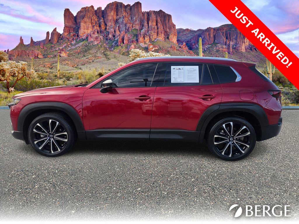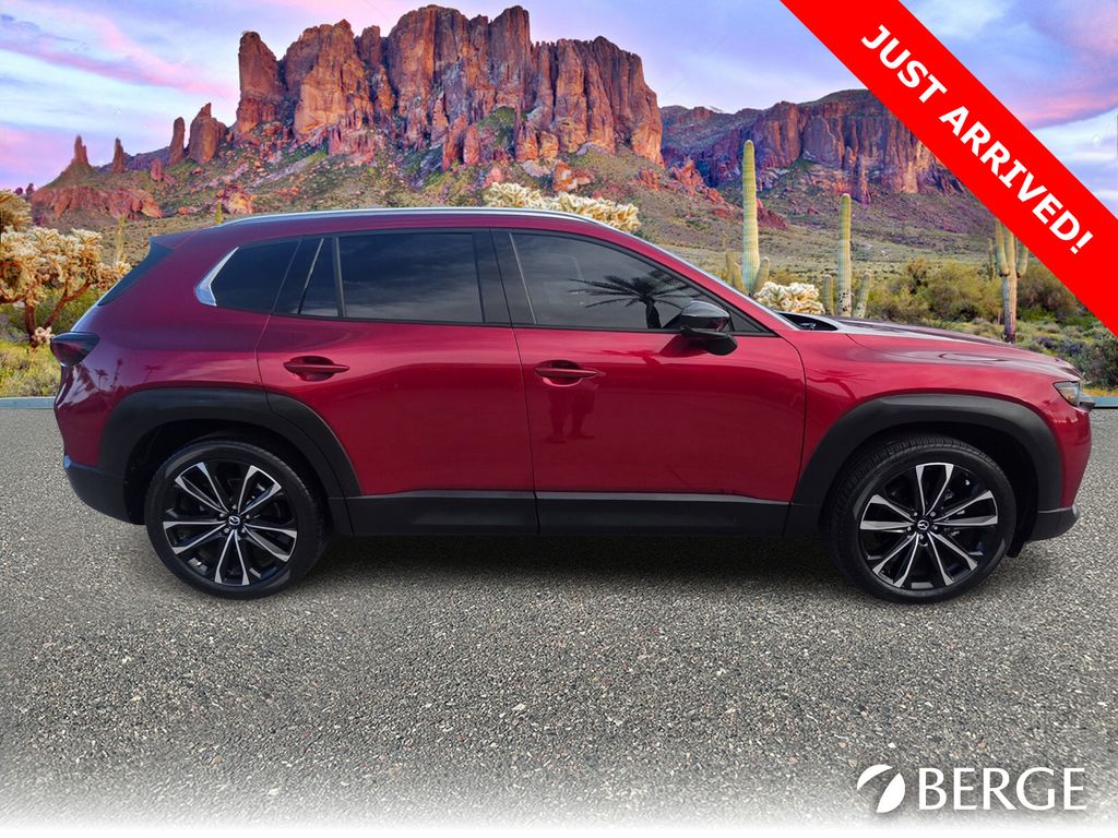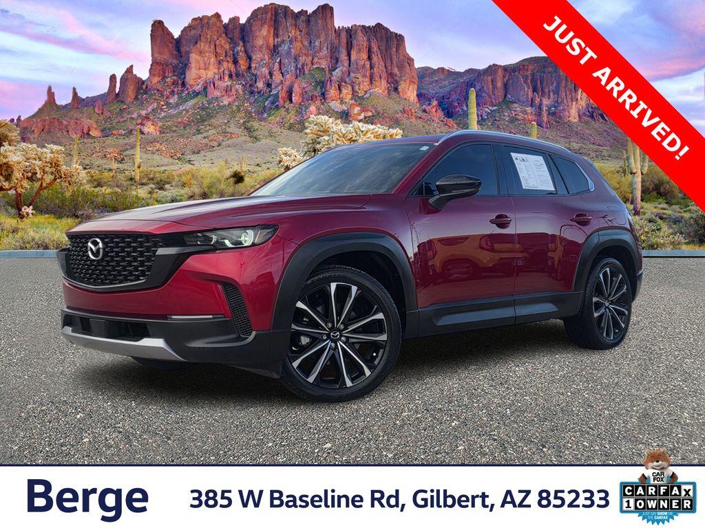 Serving The Valley For Over 40 Years! This Mazda CX-50 is equipped with the following features: Cargo Package (Cargo Blocks), Mazda Certified Pre-Owned Certified, 12 Speakers, 20" x 8J Aluminum Alloy Wheels, 3.841 Axle Ratio, 4-Wheel Disc Brakes, ABS brakes, Air Conditioning, Alloy wheels, AM/FM radio: SiriusXM, AppLink/Apple CarPlay and Android Auto, Auto High-beam Headlights, Auto-dimming Rear-View mirror, Automatic temperature control, Brake assist, Bumpers: body-color, Delay-off headlights, Driver door bin, Driver vanity mirror, Dual front impact airbags, Dual front side impact airbags, Electronic Stability Control, Emergency communication system: MAZDA CONNECT, Exterior Parking Camera Rear, Front anti-roll bar, Front Bucket Seats, Front Center Armrest, Front dual zone A/C, Front reading lights, Front wheel independent suspension, Fully automatic headlights, Garage door transmitter: HomeLink, Heads-Up Display, Heated & Ventilated Front Bucket Seats, Heated door mirrors, Heated front seats, Heated steering wheel, Illuminated entry, Knee airbag, Leather Seat Trim, Leather Shift Knob, Leather steering wheel, Low tire pressure warning, Memory seat, Occupant sensing airbag, Outside temperature display, Overhead airbag, Overhead console, Panic alarm, Passenger door bin, Passenger vanity mirror, Power door mirrors, Power driver seat, Power Liftgate, Power moonroof, Power passenger seat, Power steering, Power windows, Radio data system, Radio: AM/FM/HD Audio System, Rain sensing wipers, Rear seat center armrest, Rear window defroster, Rear window wiper, Remote keyless entry, Retractable Cargo Cover, Soul Red Crystal Metallic Paint Charge, Speed control, Speed-sensing steering, Split folding rear seat, Spoiler, Steering wheel mounted audio controls, Tachometer, Telescoping steering wheel, Tilt steering wheel, Traction control, Trip computer, Turn signal indicator mirrors, Variably intermittent wipers, and Ventilated front seats.