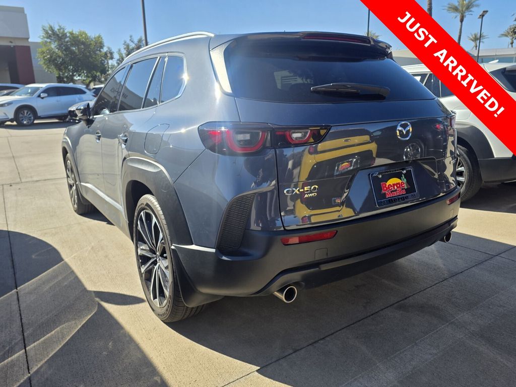 Serving The Valley For Over 40 Years! This Mazda CX-50 is equipped with the following features: Cargo Package, Mazda Certified Pre-Owned Certified, 12 Speakers, 4-Wheel Disc Brakes, ABS brakes, Air Conditioning, Alloy wheels, AM/FM radio: SiriusXM, AppLink/Apple CarPlay and Android Auto, Auto High-beam Headlights, Auto-dimming Rear-View mirror, Automatic temperature control, Brake assist, Bumpers: body-color, Carpet Cargo Mat, Delay-off headlights, Driver door bin, Driver vanity mirror, Dual front impact airbags, Dual front side impact airbags, Electronic Stability Control, Emergency communication system: MAZDA CONNECT, Exterior Parking Camera Rear, Front and Rear Splash Guards, Front anti-roll bar, Front Bucket Seats, Front Center Armrest, Front dual zone A/C, Front reading lights, Front wheel independent suspension, Fully automatic headlights, Garage door transmitter: HomeLink, Heads-Up Display, Heated and Ventilated Front Seats with 3 Level Adjustment, Heated door mirrors, Heated front seats, Illuminated entry, Knee airbag, Leather Seat Trim, Leather Shift Knob, Leather steering wheel, Low tire pressure warning, Memory seat, Occupant sensing airbag, Outside temperature display, Overhead airbag, Overhead console, Panic alarm, Passenger door bin, Passenger vanity mirror, Polymetal Gray Metallic Paint Charge, Power door mirrors, Power driver seat, Power Liftgate, Power moonroof, Power passenger seat, Power steering, Power windows, Radio data system, Radio: AM/FM/HD Bose 12-Speaker Audio Sound System, Rain sensing wipers, Rear seat center armrest, Rear window defroster, Rear window wiper, Remote keyless entry, Speed control, Speed-sensing steering, Split folding rear seat, Spoiler, Steering wheel mounted audio controls, Tachometer, Telescoping steering wheel, Tilt steering wheel, Traction control, Trip computer, Turn signal indicator mirrors, Variably intermittent wipers, Ventilated front seats, and Wheels: 20" x 8J Aluminum Alloy Black Metallic with Machining Cut.