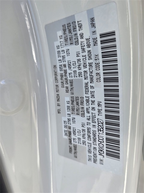 Serving The Valley For Over 40 Years! This Mazda CX-90 is equipped with the following features: 12 Speakers, 3rd row seats: bench, 4-Wheel Disc Brakes, ABS brakes, Air Conditioning, Alloy wheels, AM/FM radio: SiriusXM, Auto High-beam Headlights, Auto-dimming door mirrors, Auto-dimming Rear-View mirror, Automatic temperature control, Black Lug Nuts & Black Wheel Locks, Brake assist, Bumpers: body-color, Carpeted Cargo Mat (CMS), Compass, Delay-off headlights, Driver door bin, Driver vanity mirror, Dual front impact airbags, Dual front side impact airbags, E911 Automatic Emergency Notification, Electronic Stability Control, Emergency communication system: MAZDA CONNECT, Exterior Parking Camera Rear, Four wheel independent suspension, Front anti-roll bar, Front Bucket Seats, Front Center Armrest w/Storage, Front dual zone A/C, Front reading lights, Fully automatic headlights, Garage door transmitter: HomeLink, Heads-Up Display, Heated door mirrors, Heated front seats, Heated rear seats, Heated steering wheel, Heated/Ventilated Front Bucket Seats, Illuminated entry, Infotainment System Voice Command, Knee airbag, Leather Seat Trim, Leather Shift Knob, Leather steering wheel, Low tire pressure warning, Mazda Connected Services, Mazda Online Navigation, Memory seat, Navigation system: MAZDA CONNECT, Occupant sensing airbag, Outside temperature display, Overhead airbag, Overhead console, Panic alarm, Passenger door bin, Passenger vanity mirror, Power door mirrors, Power driver seat, Power Liftgate, Power moonroof, Power passenger seat, Power steering, Power windows, Premier Carpet Set - Bench Seat, Premium Carpet Floor Mats (PFA), Radio Broadcast Data System Program Information, Radio data system, Radio: AM/FM w/HD/Bose 12-Speaker Sound System, Rain sensing wipers, Rear air conditioning, Rear anti-roll bar, Rear reading lights, Rear seat center armrest, Rear window defroster, Rear window wiper, Remote keyless entry, SMS Text Msg Audio Delivery & Reply, Speed control, Speed-sensing steering, Split folding rear seat, Spoiler, Steering wheel mounted audio controls, Tachometer, Telescoping steering wheel, Tilt steering wheel, Traction control, Trip computer, Turn signal indicator mirrors, Variably intermittent wipers, Ventilated front seats, and Wheels: 21" x 9.5J Aluminum Alloy w/Black Metal Finish.