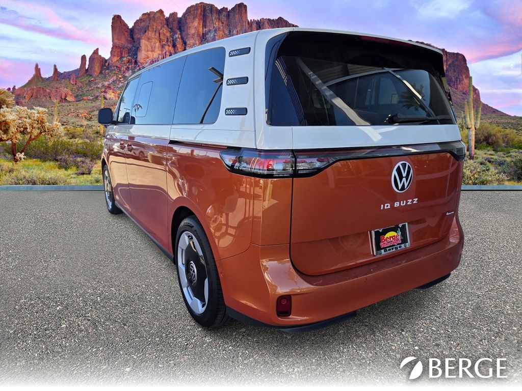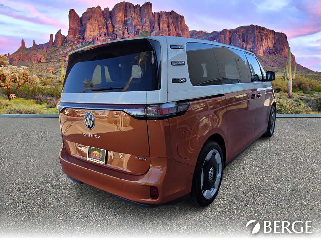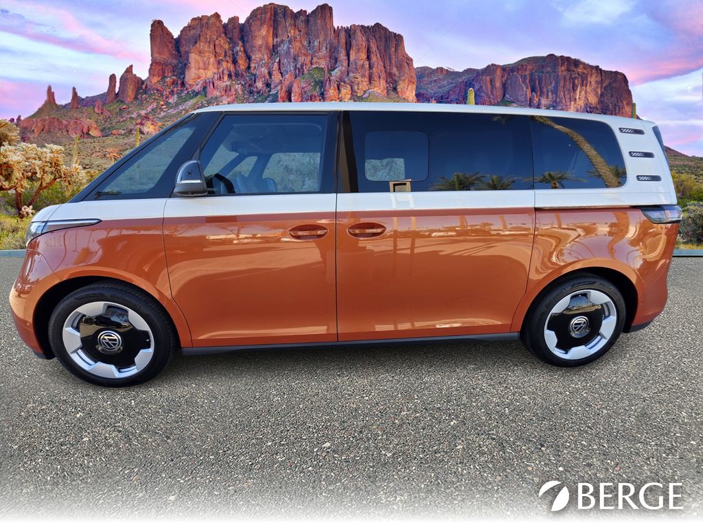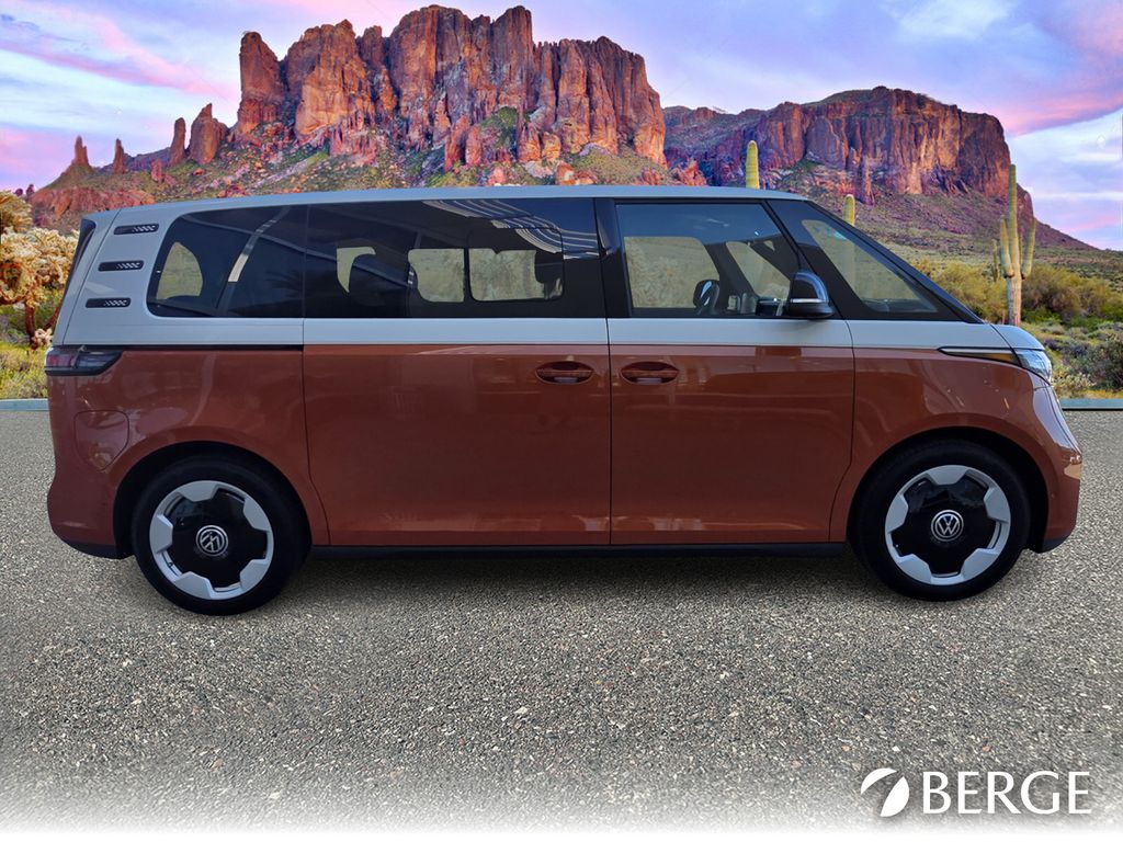 Serving The Valley For Over 40 Years! This Volkswagen ID. Buzz is equipped with the following features: 14 Speakers, 3rd row seats: split-bench, ABS brakes, Air Conditioning, Alloy wheels, Auto High-beam Headlights, Auto-dimming Rear-View mirror, Automatic temperature control, Brake assist, Bumpers: body-color, Delay-off headlights, Driver door bin, Driver vanity mirror, Driver's Seat Mounted Armrest, Dual front impact airbags, Dual front side impact airbags, Electronic Stability Control, Emergency communication system: VW Car-Net Safe & Secure 5-year, Exterior Parking Camera Rear, Four wheel independent suspension, Front anti-roll bar, Front Bucket Seats, Front dual zone A/C, Front fog lights, Front reading lights, Fully automatic headlights, harman/kardon Speakers, Heads-Up Display, Heated & Actively Ventilated Front Seats, Heated door mirrors, Heated front seats, Heated rear seats, Heated steering wheel, Illuminated entry, Leather steering wheel, Low tire pressure warning, Memory seat, Navigation System, Occupant sensing airbag, Outside temperature display, Overhead airbag, Panic alarm, Passenger door bin, Passenger seat mounted armrest, Passenger vanity mirror, Perforated V-Tex Leatherette Seating Surfaces, Power door mirrors, Power driver seat, Power Liftgate, Power passenger seat, Power steering, Power windows, Radio data system, Radio: Discover Pro Max w/Touchscreen Navigation, Rain sensing wipers, Rear air conditioning, Rear anti-roll bar, Rear reading lights, Rear window defroster, Rear window wiper, Remote keyless entry, Speed control, Speed-sensing steering, Split folding rear seat, Spoiler, Steering wheel mounted audio controls, TBD Axle Ratio, Telescoping steering wheel, Tilt steering wheel, Traction control, Trip computer, Turn signal indicator mirrors, Variably intermittent wipers, Ventilated front seats, and Wheels: 20" Two-Tone Disc Alloy.